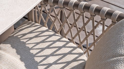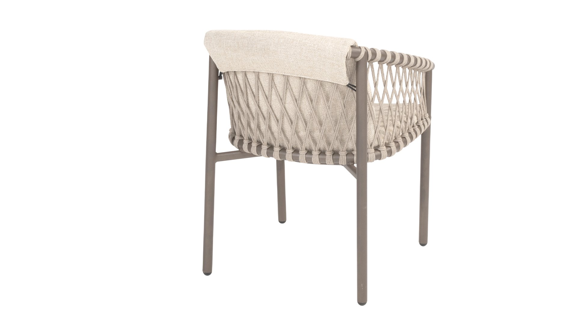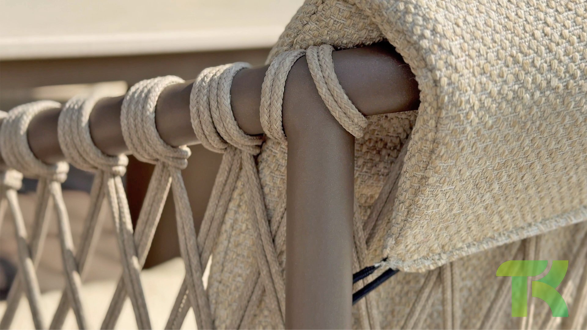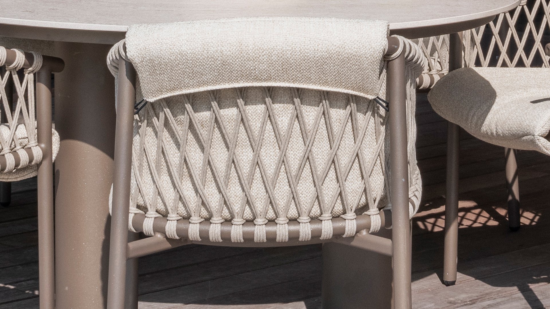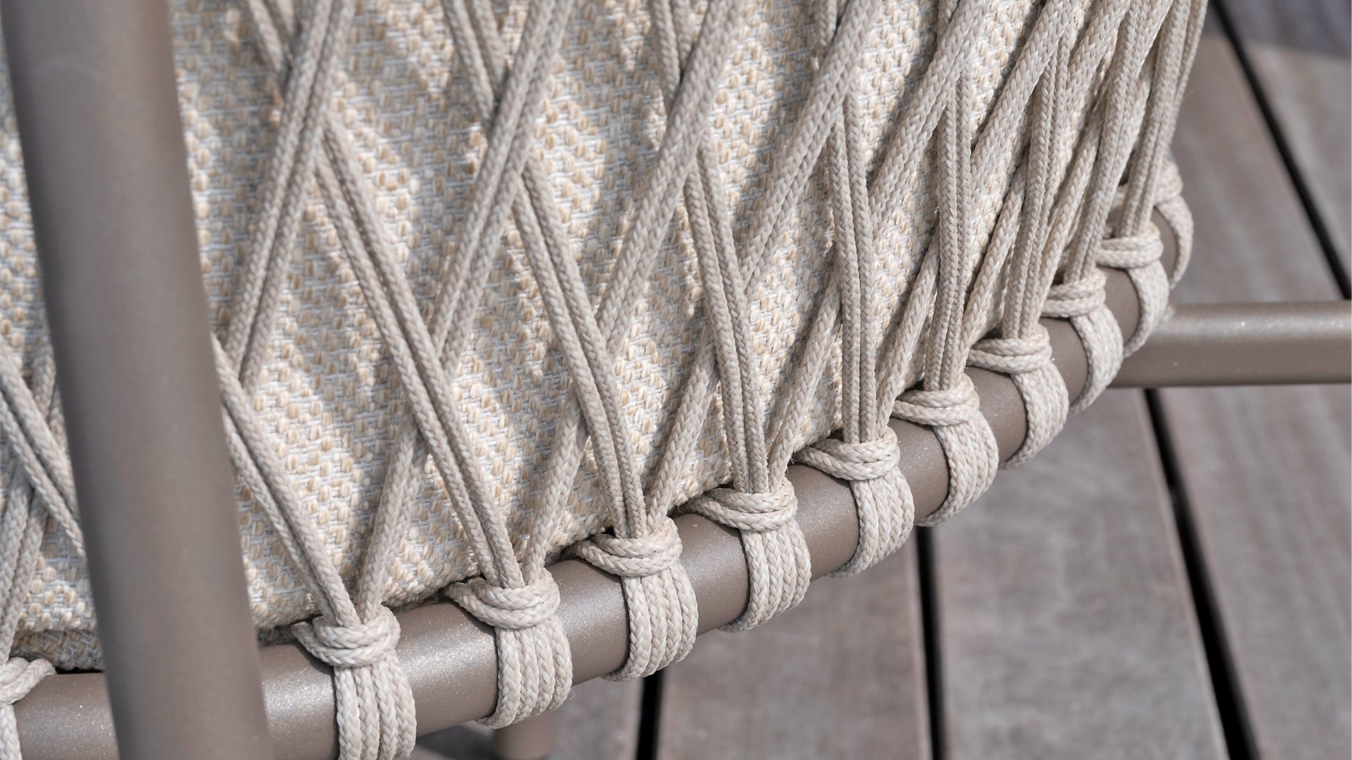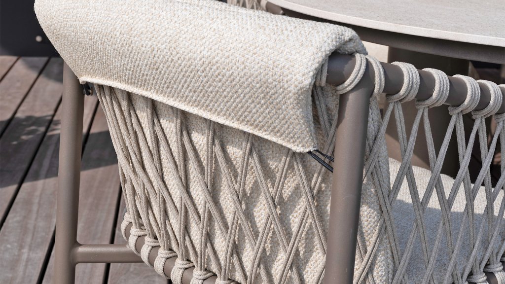 Das pulverbeschichtete Aluminiumgestell verleiht dem Stuhl die nötige Festigkeit und Stabilität, gleichzeitig wirkt er leicht und modern. Die pulverbeschichtete Oberfläche bietet zusätzlichen Schutz vor Korrosion und anderen Witterungseinflüssen wie Regen oder Salzwasser, sodass der Stuhl unabhängig von der Jahreszeit für den Außenbereich geeignet ist.