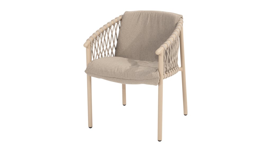 Der 4SO Allora-Stuhl ist eine stilvolle und komfortable Wahl für den Innen- und Außenbereich mit einem modernen Look, der zu verschiedenen Garteneinstellungen passt. Der Stuhl ist in zwei Varianten erhältlich: Latte und Terre. Der Allora-Stuhl ist aus Rope-Geflecht und pulverbeschichtetem Aluminium gefertigt, was sowohl für Langlebigkeit als auch für ein leichtes, modernes Aussehen sorgt. Die Verwendung von Rope-Geflecht macht den Stuhl verspielt und atmungsaktiv. Der pulverbeschichtete Aluminiumrahmen bietet zusätzlichen Schutz vor Witterungseinflüssen und macht den Stuhl pflegeleicht und leichtgewichtig.