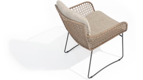 Dieses wunderschöne Material eignet sich perfekt für den Außenbereich, denn Rope ist nicht nur eine normale Spitze, an der Sie Ihre Schuhe binden können. Unsere runden Fäden sind mit einem Kunststoffkern versehen. Diese Basis aus Polypropylen sorgt dafür, dass sich das Rope minimal dehnt und sie nimmt außerdem keine Feuchtigkeit auf. Die Umhüllung besteht aus Acrylstoff, der mit dem wetterfesten Stoff unserer Gartenkissen vergleichbar ist. Diese Umhüllung fühlt sich weich an und ist sehr wasserabweisend, UV-beständig und farbecht. Die flachen Rope-Varianten besitzen den gleichen wetterfesten Materialmix, doch das Polypropylen-Material wurde hier mit dem Acryl-Stoff verwebt. Durch diese Technik besitzt das flache Rope die gleichen Eigenschaften, hat jedoch eine ganz andere Ausstrahlung.