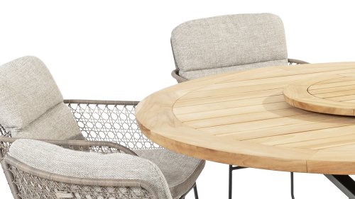 Gartenmöbel aus Teakholz bieten einen atemberaubenden Blick.Teakholz eignet sich besonders gut für den Einsatz im Außenbereich. Es ist resistent gegen Schädlinge und Pilze und widerstandsfähig gegen Sonne, Regen und Schnee. Mit der Zeit entwickelt das Teakholz eine silbergraue Patina. Gartenmöbel aus Teakholz bieten einen atemberaubenden Blick. Darüber hinaus ist es starkes Material und erfordert nur wenig Wartung. Wer die ursprüngliche Farbe des Teakholzes bevorzugt, kann durch regelmäßiges benutzen unser Pflegemittel ganz einfach das Vergrauen des Holzes verhindern.Darüber hinaus können Sie Teak mit grüner Seife reinigen. Durch Temperaturunterschiede und durch den Wechsel von Feuchtigkeit und Trockenheit können kleine Haarrisse entstehen. Es ist üblich, dass Man in dies Unvollkommenheiten findet, diese Unregelmäßigkeiten sind kennzeichnend für dieses Produkt. Diese Unregelmäßigkeiten können nie einen Anlass zu Reklamation, Garantie oder Claim formen. Es betrifft eine Unterschrift von Originalität! Wir gewähren Garantie auf alle Produktions- und Konstruktionsfehler. Die Wirkung von Teakholz ist nicht enthalten. Wenn Sie sich für Teakholz entscheiden, erwarten wir, dass Sie diese Eigenschaften zu schätzen wissen. Eventuell auftretende Haarrisse, Äste im Teakholz und raue Oberflächen im Laufe der Zeit fallen nicht unter unsere Garantie. Diese Eigenschaften verleihen dem Teakholz seinen eigenen Charakter und sind Teil der Optik. Seien Sie vorsichtig mit einem Blumentopf oder einer Vase auf Ihrem Gartentisch aus Teakholz, da dies zu hartnäckigen Kreisen oder Farbunterschieden führen kann.