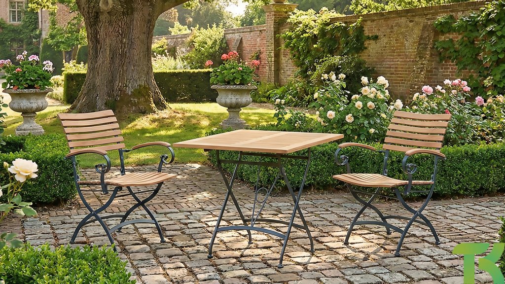Ein klassisches Design wie der 4SO Bellini kommt nie aus der Mode. Romantische Rahmen und Teakholzlatten in warmer Farbe sind die Merkmale dieser Serie, perfekt für einen romantischen Garten oder Balkon. Die ergonomischen Rundungen im Holz machen die Möbel viel bequemer, als man zunächst vermuten würde. Neben den hervorragenden praktischen Eigenschaften ist das Set äußerst dekorativ. Es verleiht Ihrem Garten sofort ein malerisches Aussehen, die Aufbewahrung der Möbel ist völlig einfach, da alle Gartenmöbel zusammenklappbar sind und somit sehr kompakt sind.