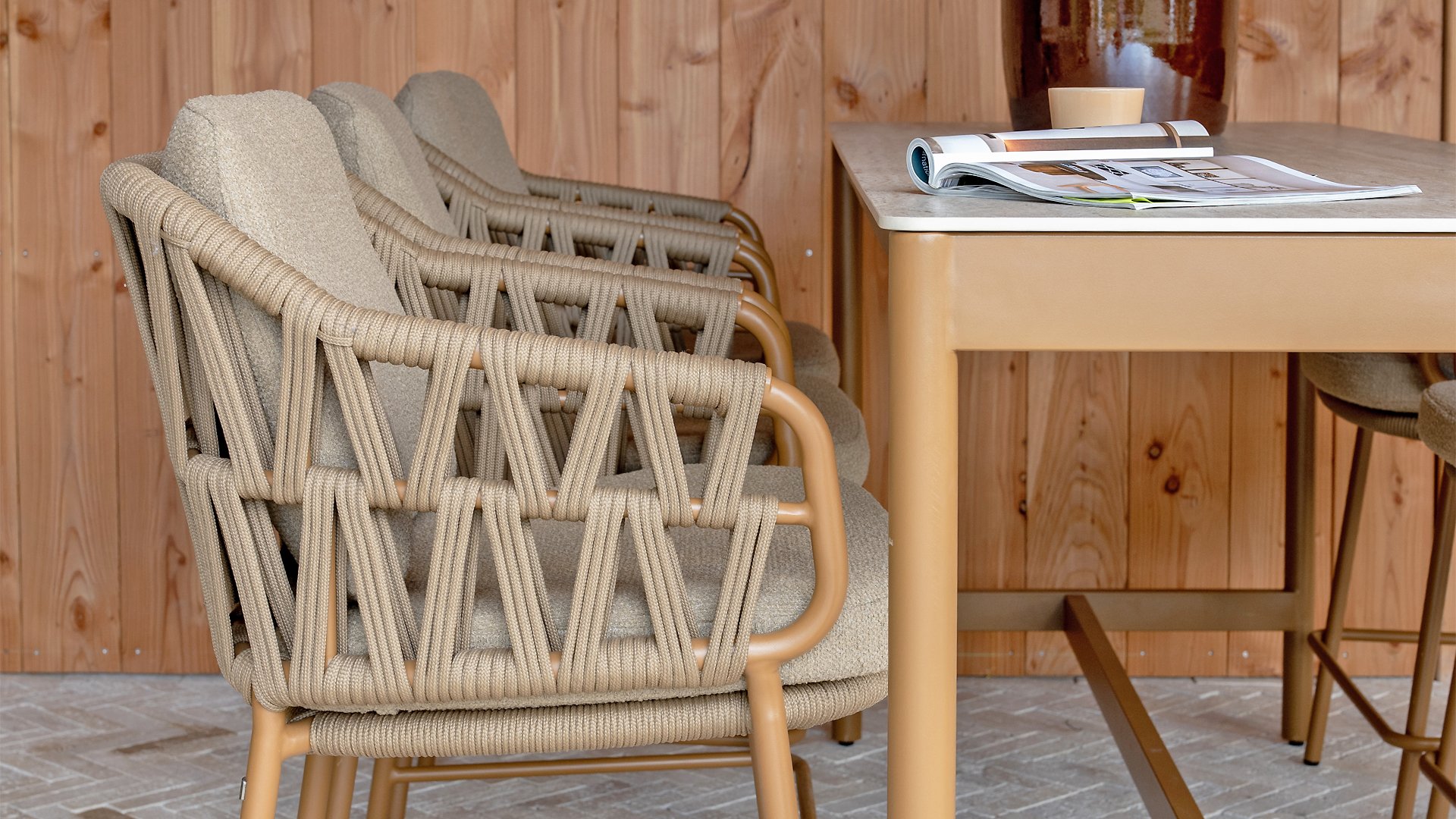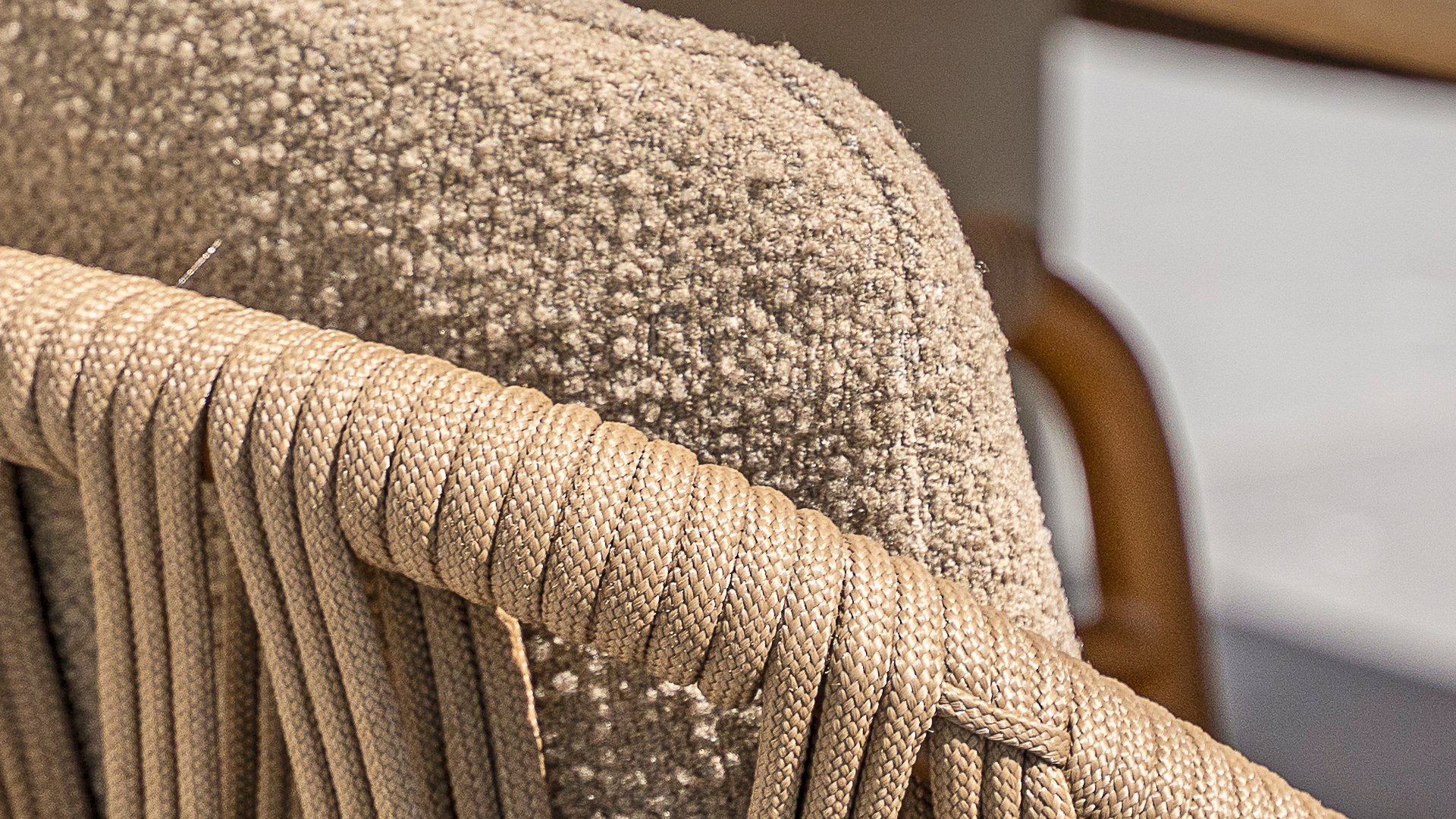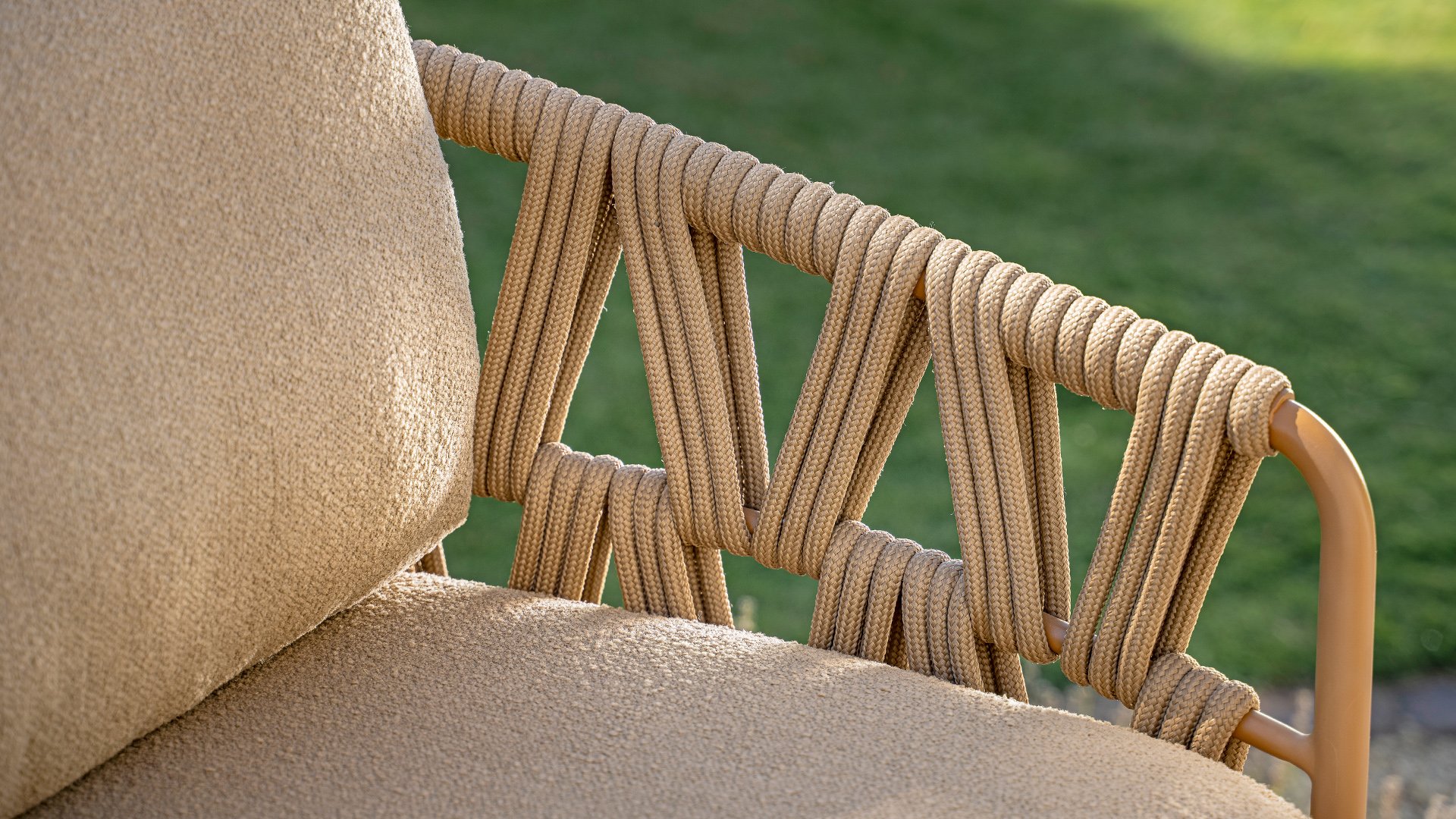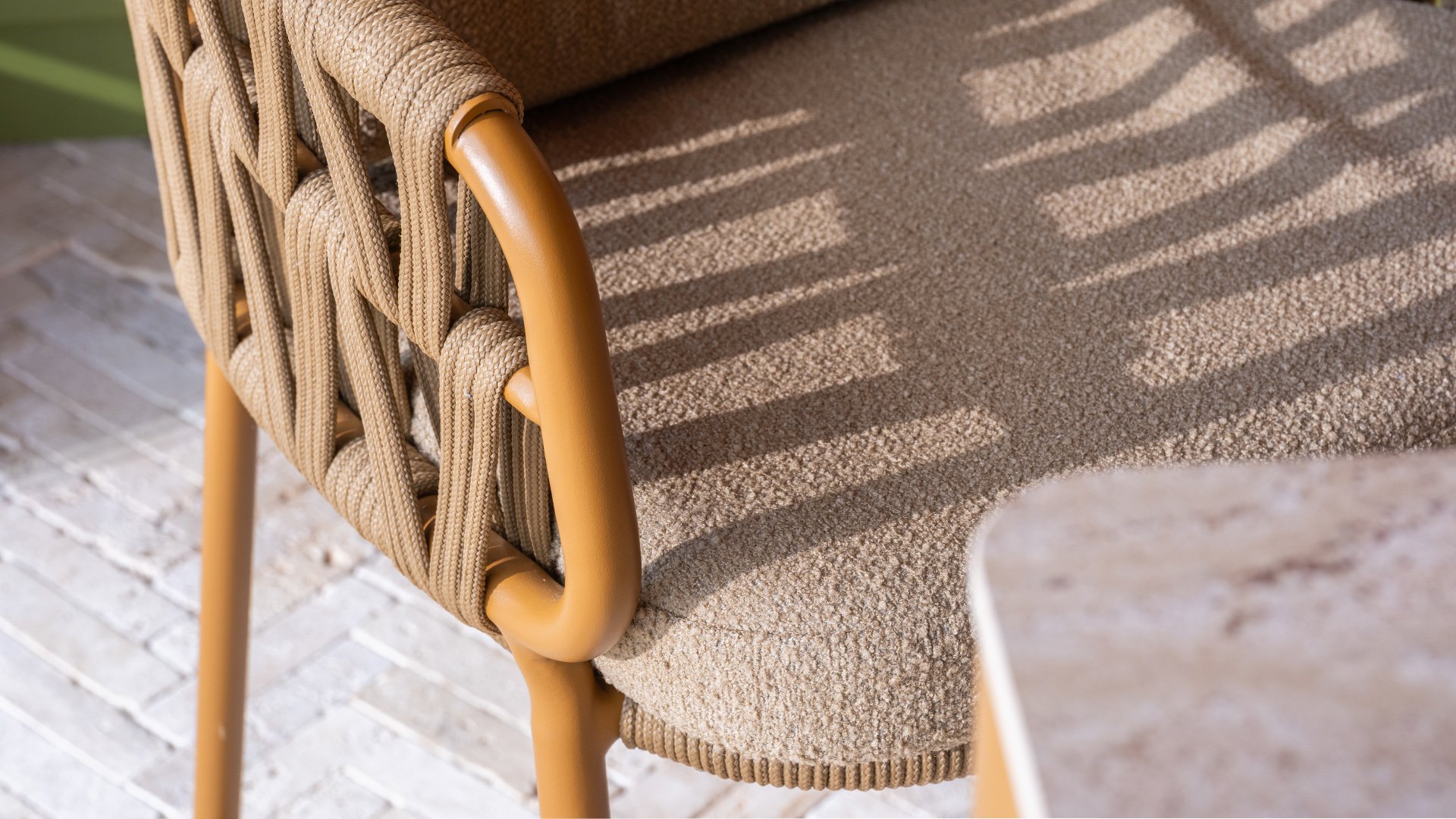 - Natürliches Design: Die braune Seilpolsterung verleiht dem Stuhl ein natürliches, warmes und einladendes Aussehen – perfekt für eine entspannte Outdoor-Atmosphäre.