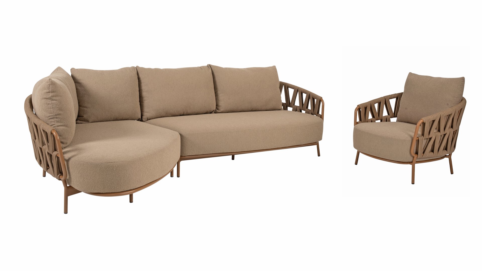 | Materialien Loungegruppe | Rope, Pulverbeschichtet Aluminium/Stahl |