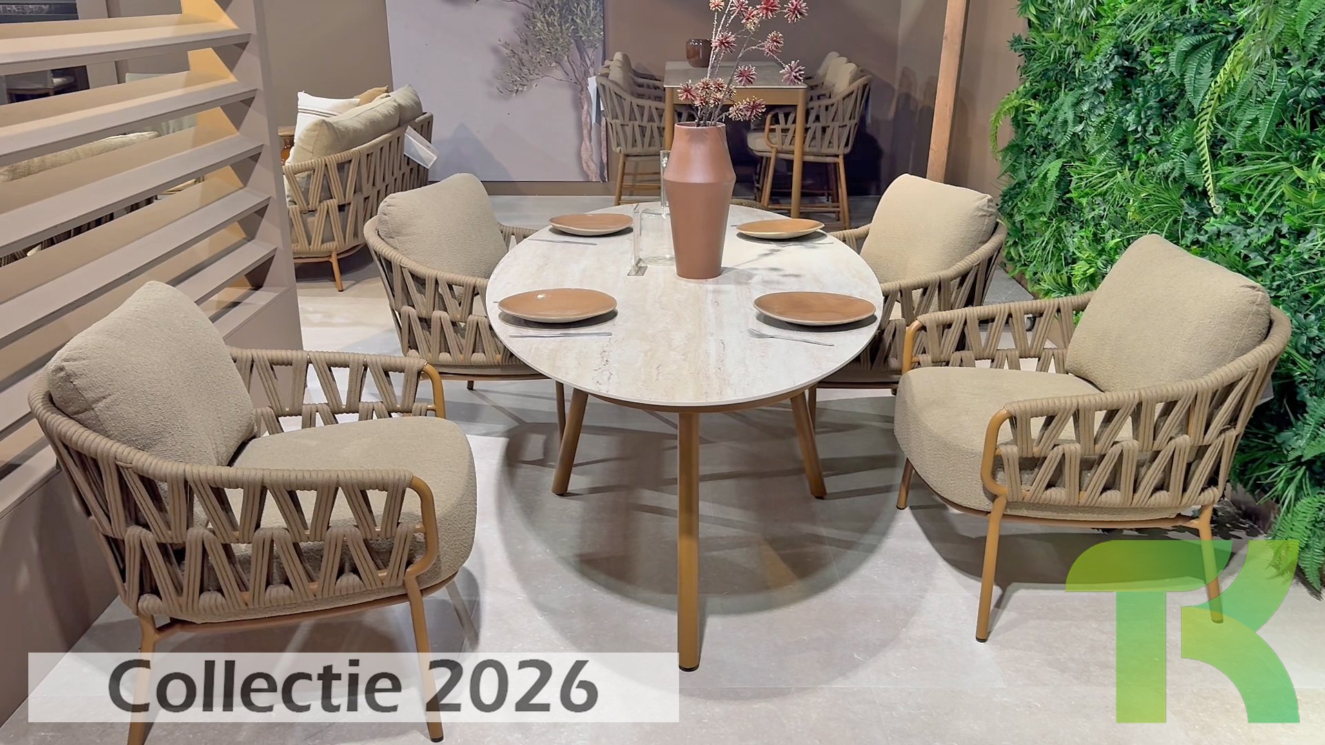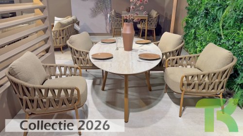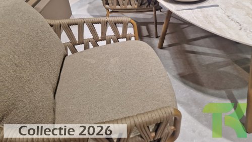 Der robuste Rahmen besteht aus pulverbeschichtetem Aluminium in einem warmen Erdton, kombiniert mit einem auffallend dicken Seilgeflecht. Diese handwerkliche Verarbeitung verleiht der Biarritz-Serie ein robustes und zugleich edles Aussehen. Die geräumigen Sitzflächen, die prallen Kissen und die weichen Texturen machen diese Lounge zu einem luxuriösen Ort für lange Sommertage.