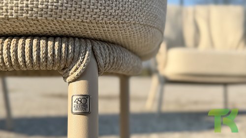 Die 4 Seasons Outdoor Calpi-Serie in einem neuen Look, Latte. Exklusiv bei Gartenmobelrabatt.de.de! Es hat ein zeitgemäßes Design und verleiht jeder Terrasse den Premium- und warmen Look, den Sie suchen. Die breiten Seilteile sind auf originelle Weise geflochten und verleihen dem Calpi einen offenen Charakter. Der 4Seasons Calpi wird mit Kissen aus einem Allwetterstoff geliefert. Dieser Stoff ist wasser- und schmutzabweisend, so dass er den verschiedenen Witterungseinflüssen standhält. Das Gestell ist aus pulverbeschichtetem Edelstahl gefertigt, so dass das 4SO Calpi Loungeset das ganze Jahr über im Freien stehen kann.