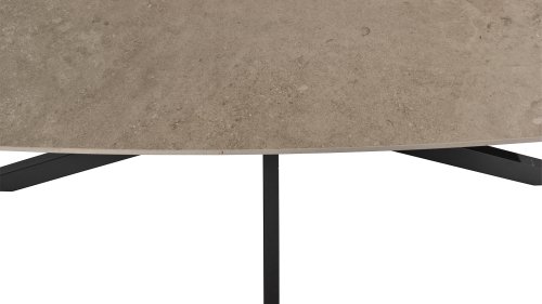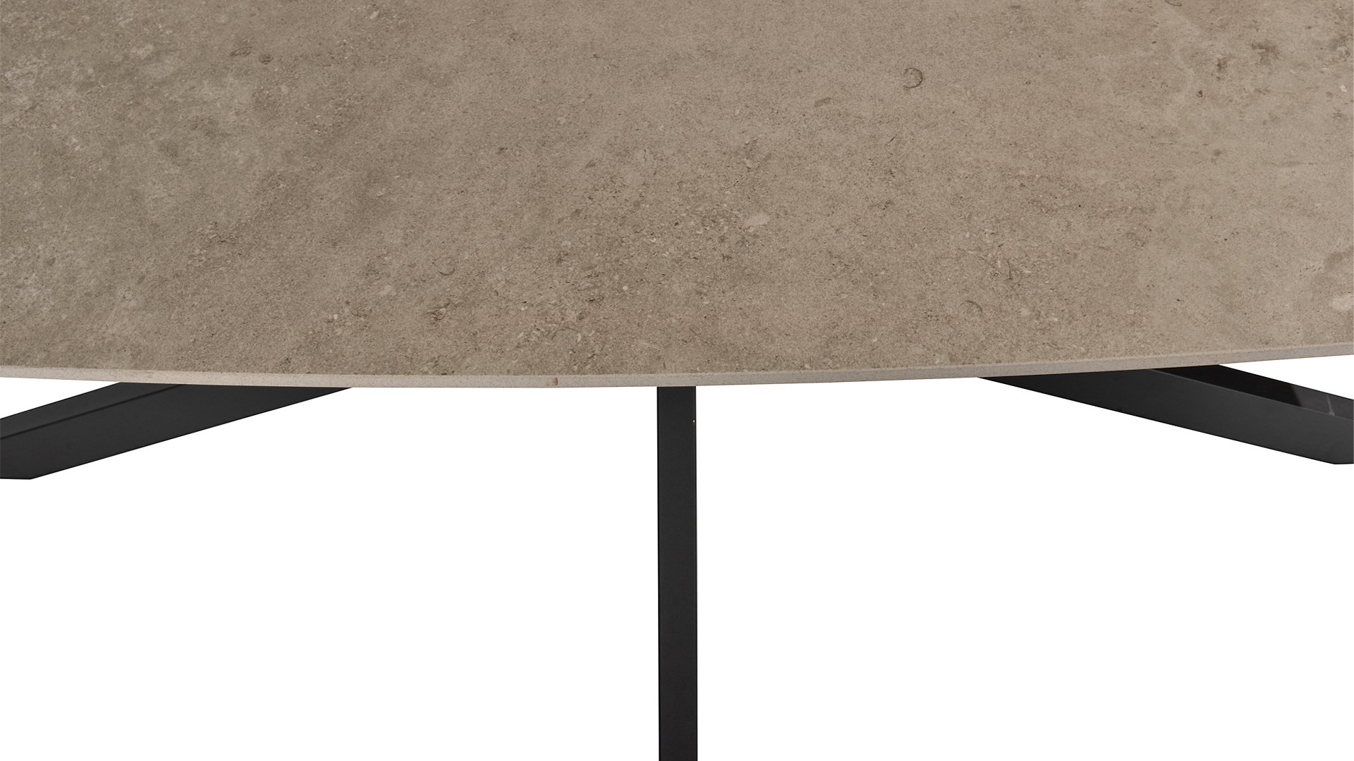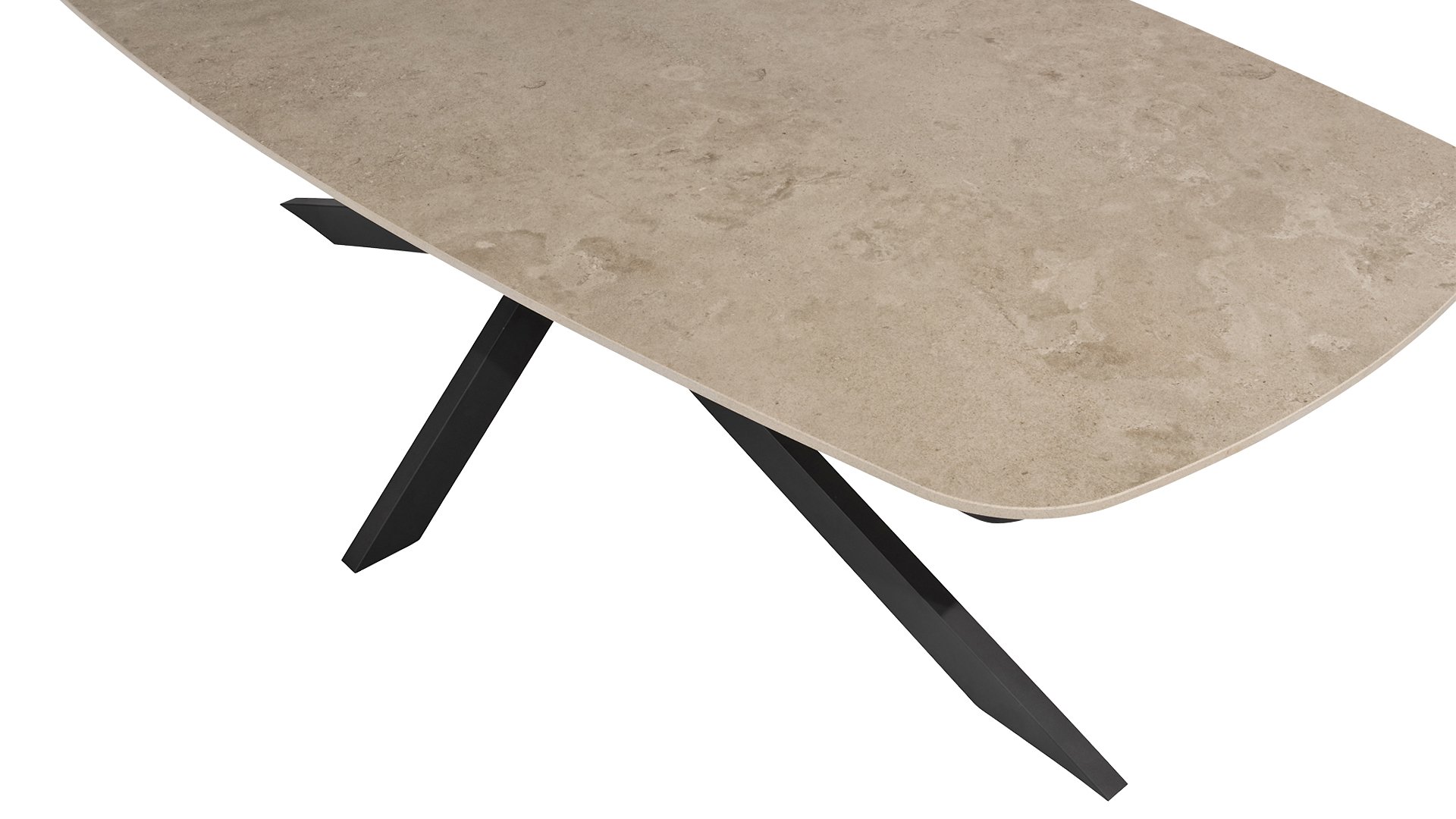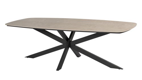 Ein wunderschöner, eleganter Tisch mit einer wunderschönen ovalen Keramikplatte von nicht weniger als 240 cm. Das Platte strahlt nicht nur Raffinesse aus, sondern hat auch ein markantes, modernes Erscheinungsbild. Das markante Kreuzbein ist in drei Farben erhältlich, sodass Sie diesen Tisch mühelos an Ihre Wünsche und Bedürfnisse anpassen können. Ob Sie sich für Industrieschwarz, warmes Latte oder schicke Terre-Farbe entscheiden, jede Farbe verleiht dem Tisch einen besonderen Charakter und einen Hauch von Luxus.