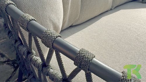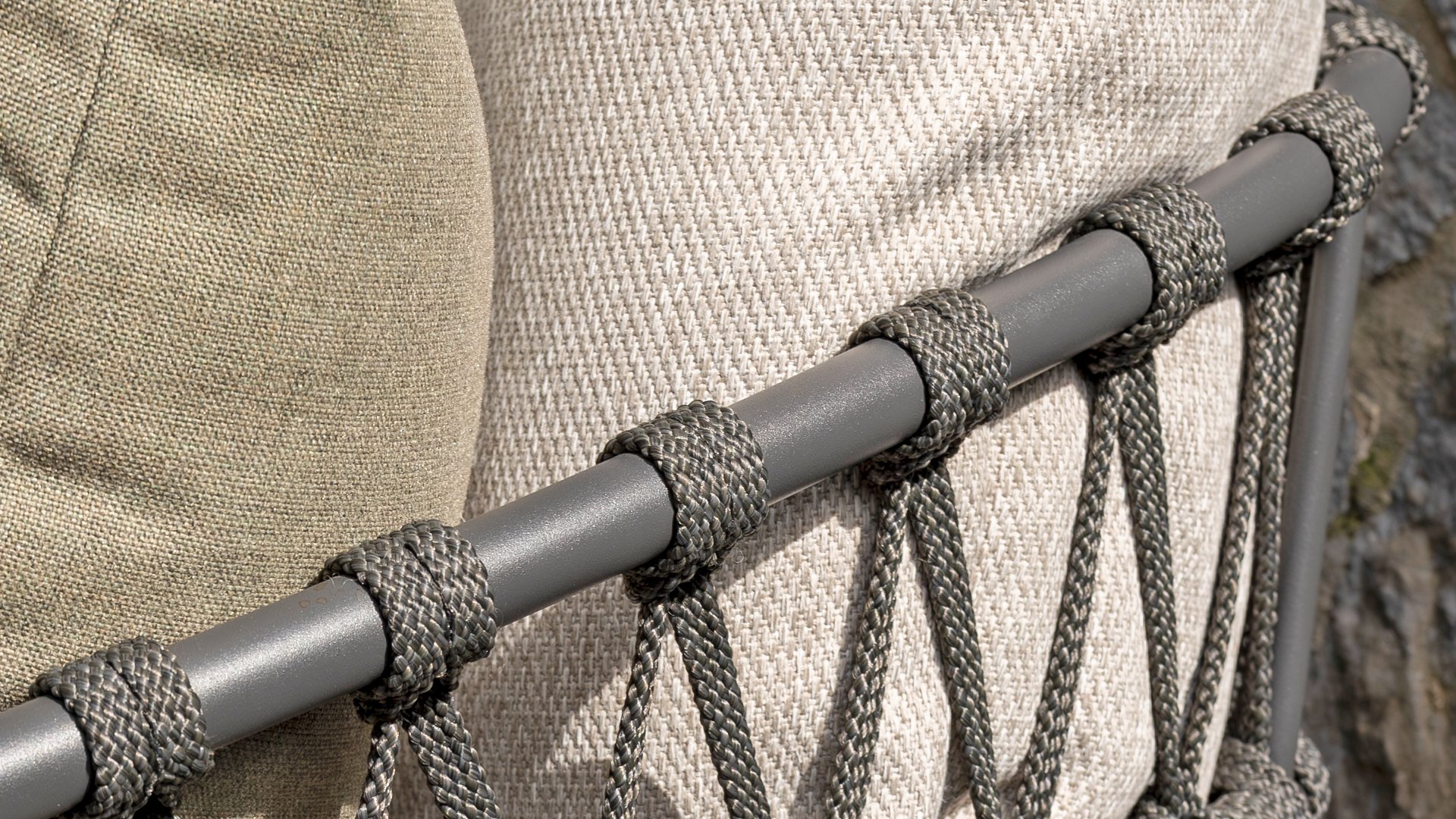 Dieses wunderschöne Material eignet sich perfekt für den Außenbereich, denn Rope ist nicht nur eine normale Spitze, an der Sie Ihre Schuhe binden können. Unsere runden Fäden sind mit einem Kunststoffkern versehen. Diese Basis aus Polypropylen sorgt dafür, dass sich das Rope minimal dehnt und sie nimmt außerdem keine Feuchtigkeit auf. Die Umhüllung besteht aus Acrylstoff, der mit dem wetterfesten Stoff unserer Gartenkissen vergleichbar ist. Diese Umhüllung fühlt sich weich an und ist sehr wasserabweisend, UV-beständig und farbecht. Die flachen Rope-Varianten besitzen den gleichen wetterfesten Materialmix, doch das Polypropylen-Material wurde hier mit dem Acryl-Stoff verwebt. Durch diese Technik besitzt das flache Rope die gleichen Eigenschaften, hat jedoch eine ganz andere Ausstrahlung.