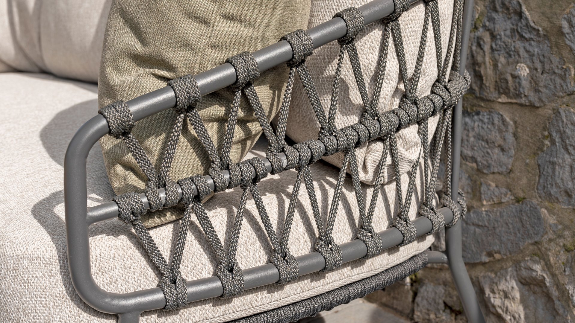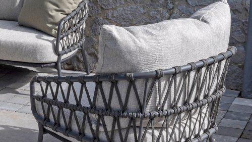 Die Calpi-Serie von 4 Seasons Outdoor hat ein zeitgemäßes Design und verleiht jeder Terrasse das Premium-Aussehen, nach dem Sie suchen. Die breiten Seilteile sind auf originelle Weise geflochten und verleihen dem Calpi einen offenen Charakter. Der 4Seasons Calpi wird mit Kissen aus einem Allwetterstoff geliefert. Dieser Stoff ist wasser- und schmutzabweisend, wodurch er vielen Witterungseinflüssen standhält. Der Rahmen besteht aus pulverbeschichtetem Edelstahl, sodass das 4SO Calpi Loungeset das ganze Jahr über im Freien stehen bleiben kann. Schauen Sie sich auch das 4SO Calpi Dining oder 4SO Calpi Low Dining an!