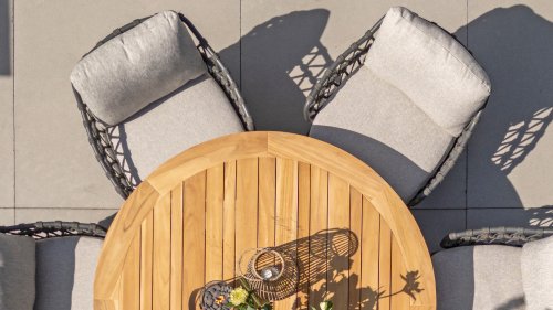Gartenmöbel aus Teakholz bieten einen atemberaubenden Blick.Teakholz eignet sich besonders gut für den Einsatz im Außenbereich. Es ist resistent gegen Schädlinge und Pilze und widerstandsfähig gegen Sonne, Regen und Schnee. Mit der Zeit entwickelt das Teakholz eine silbergraue Patina. Gartenmöbel aus Teakholz bieten einen atemberaubenden Blick. Darüber hinaus ist es starkes Material und erfordert nur wenig Wartung. Wer die ursprüngliche Farbe des Teakholzes bevorzugt, kann durch regelmäßiges benutzen unser Pflegemittel ganz einfach das Vergrauen des Holzes verhindern.Darüber hinaus können Sie Teak mit grüner Seife reinigen. Durch Temperaturunterschiede und durch den Wechsel von Feuchtigkeit und Trockenheit können kleine Haarrisse entstehen. Es ist üblich, dass Man in dies Unvollkommenheiten findet, diese Unregelmäßigkeiten sind kennzeichnend für dieses Produkt. Diese Unregelmäßigkeiten können nie einen Anlass zu Reklamation, Garantie oder Claim formen. Es betrifft eine Unterschrift von Originalität! Wir gewähren Garantie auf alle Produktions- und Konstruktionsfehler. Die Wirkung von Teakholz ist nicht enthalten. Wenn Sie sich für Teakholz entscheiden, erwarten wir, dass Sie diese Eigenschaften zu schätzen wissen. Eventuell auftretende Haarrisse, Äste im Teakholz und raue Oberflächen im Laufe der Zeit fallen nicht unter unsere Garantie. Diese Eigenschaften verleihen dem Teakholz seinen eigenen Charakter und sind Teil der Optik. Seien Sie vorsichtig mit einem Blumentopf oder einer Vase auf Ihrem Gartentisch aus Teakholz, da dies zu hartnäckigen Kreisen oder Farbunterschieden führen kann.