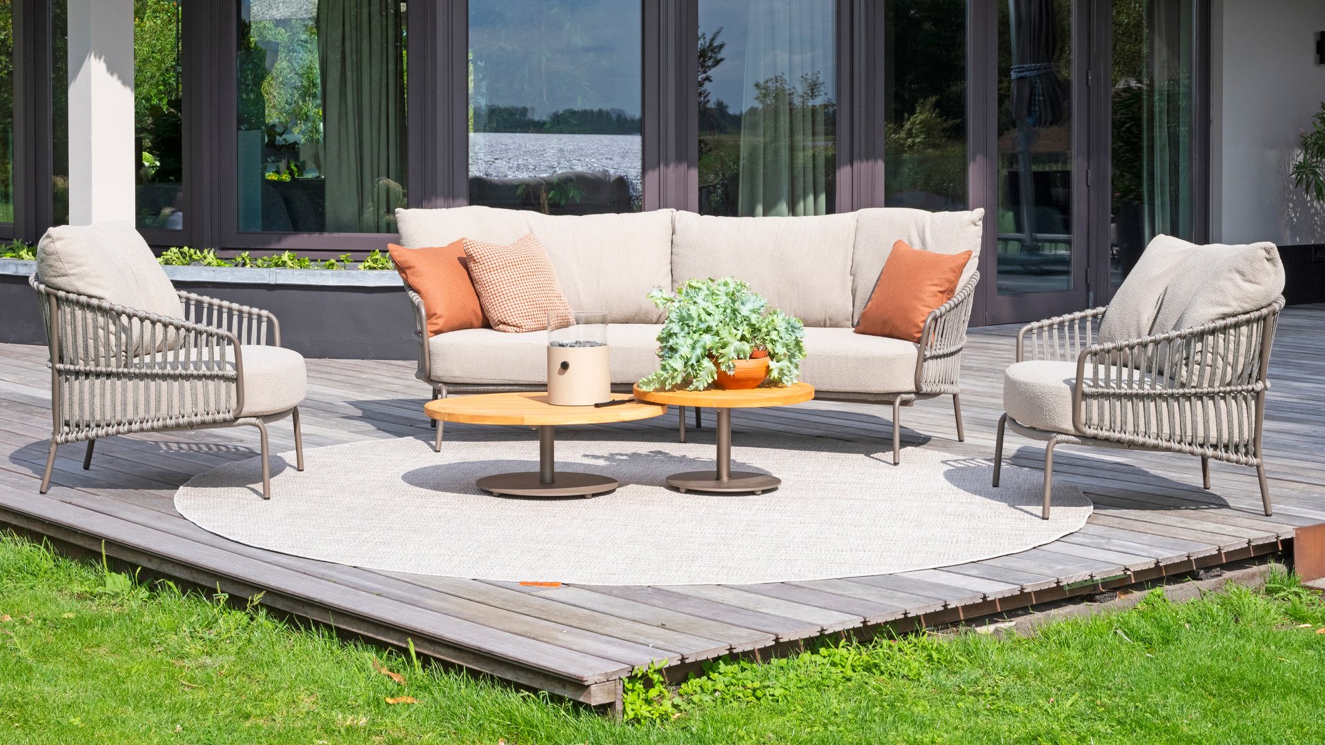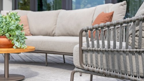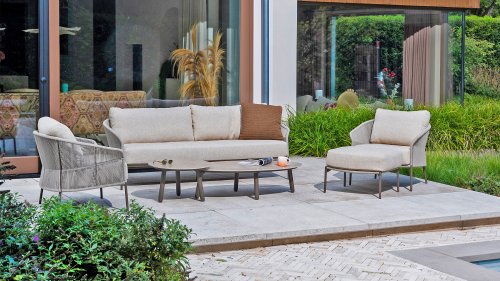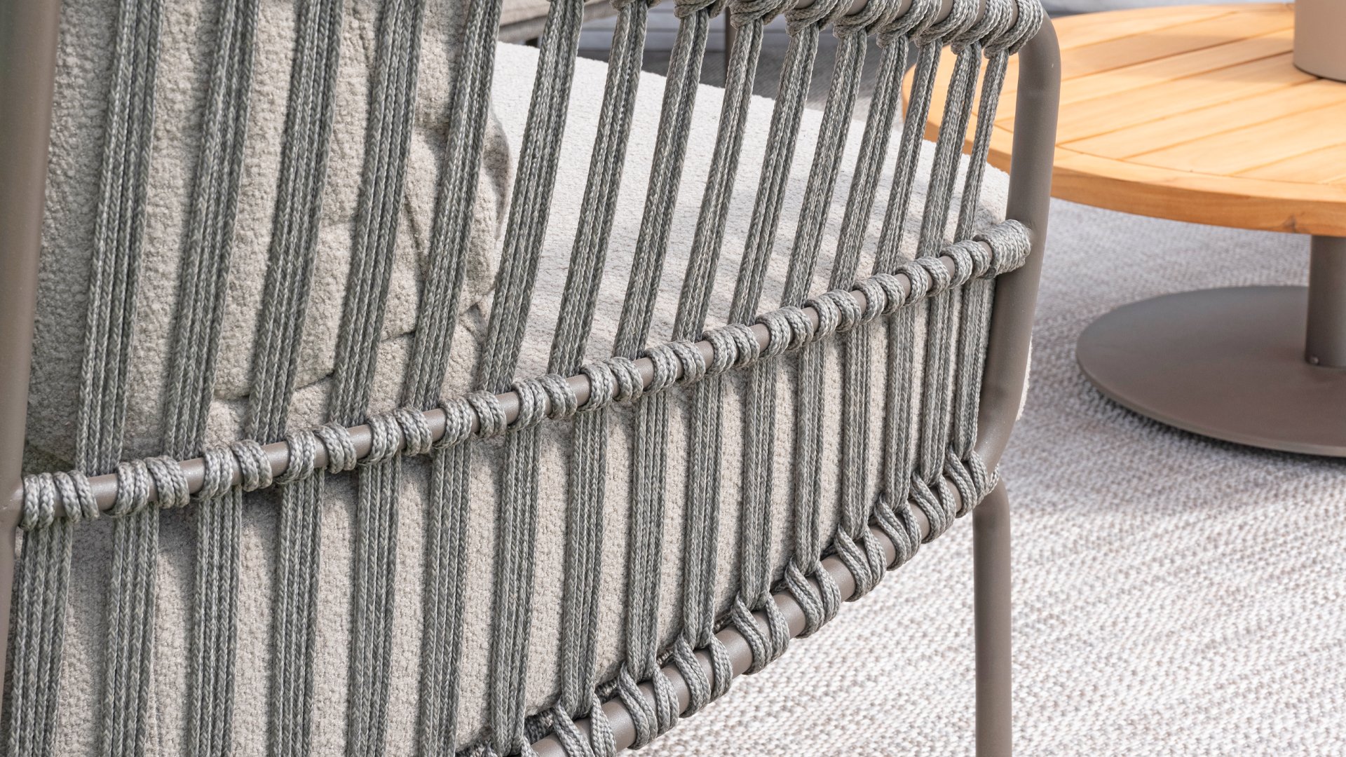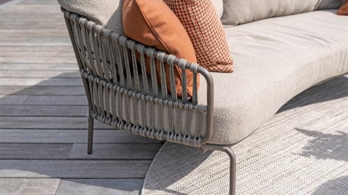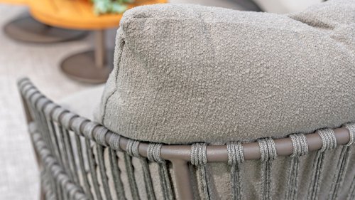 Bringen Sie das toskanische Flair in Ihren Garten mit Capalbio. Das moderne Design der 4 Seasons Outdoor Capalbio loungeset passt wunderbar zu den Erdfarben in Ihrem Garten. Diese Möbelserie kombiniert einen RVS-Rahmen in der Farbe Terre mit wunderschönen Seilmustern und Bouclé-Kissen. Entdecken Sie die umfangreiche Capalbio-Kollektion und gestalten Sie Ihren Garten komplett neu.