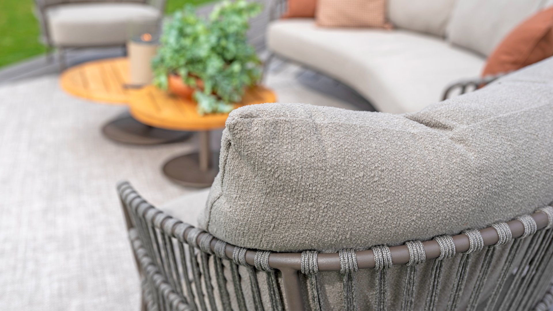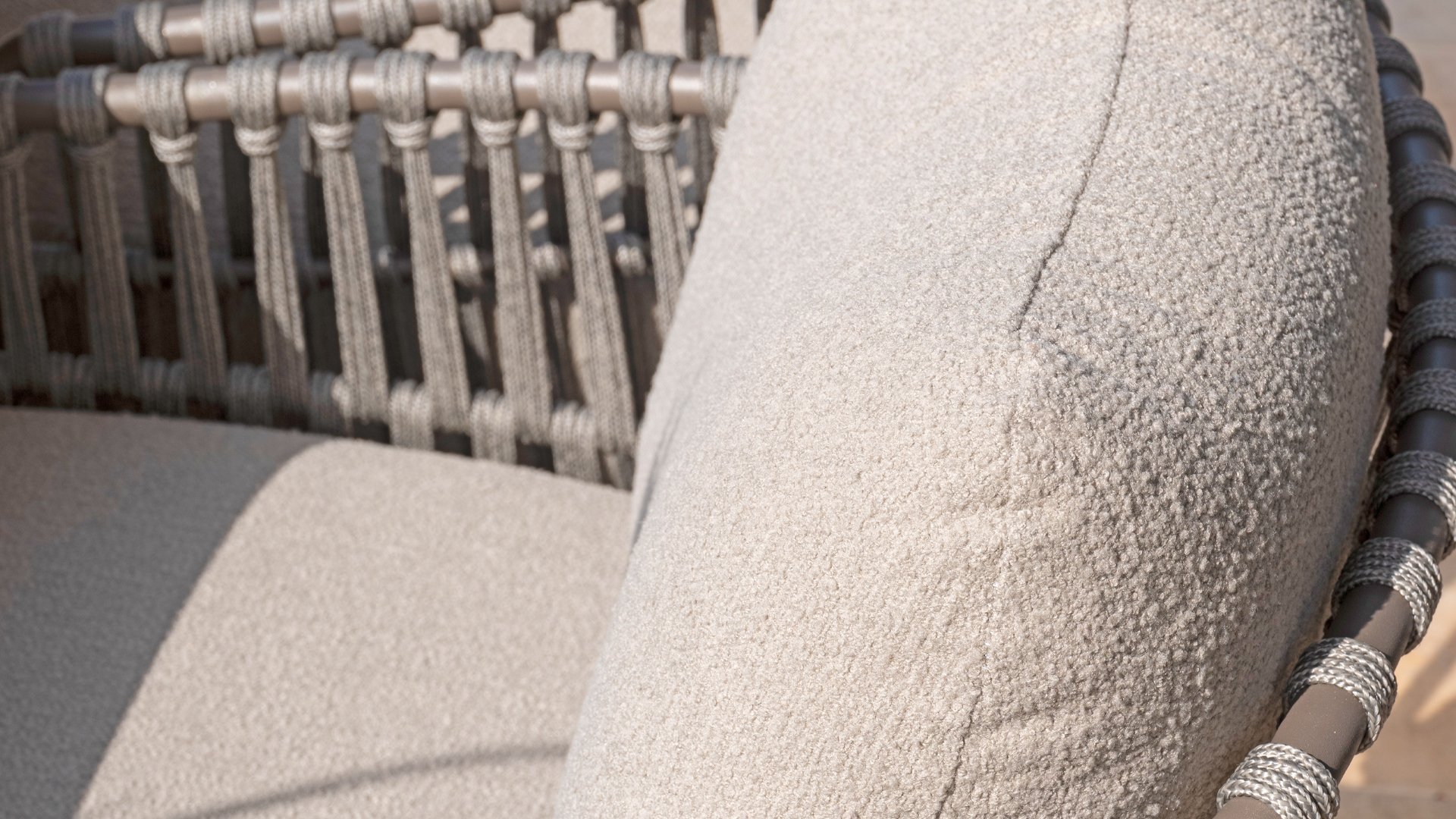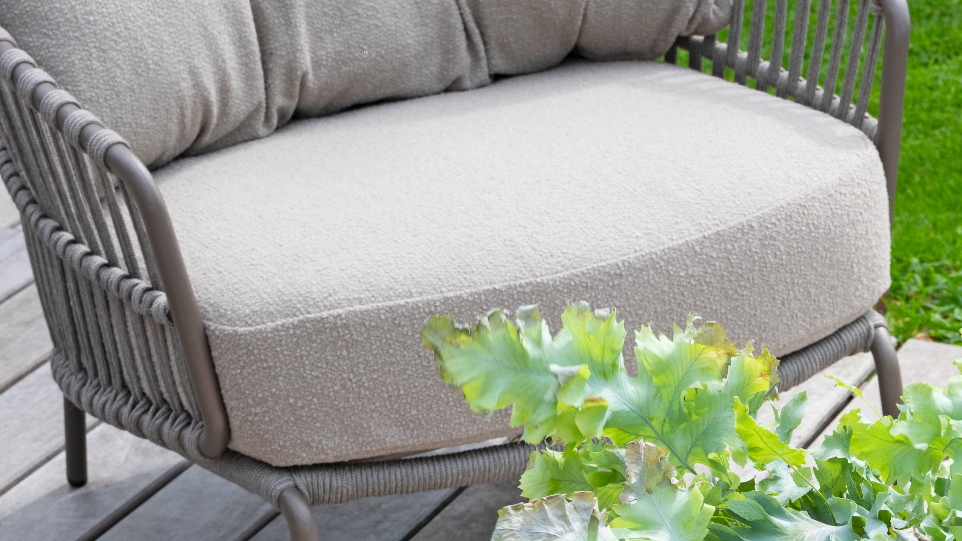 Erleben Sie den ultimativen Lounge-Komfort mit dem 4 Seasons Capalbio Sofa. Dieser Sofaist so konzipiert, dass Sie in den extra dicken Kissen aus weichem Bouclé-Stoff träumen können. Das moderne Design mit seinen eleganten Kurven und offenen Seilmustern verleiht jedem Garten eine stilvolle Note. Die Capalbio-Gartenmöbel sind Teil der Kollektion 2025 von 4 Seasons Outdoor. Die Capalbio-Modelle vereinen hohe Outdoor-Qualität mit unvergleichlichem Komfort. Sie haben eine große Auswahl an Capalbio-Möbeln, von extra niedrigen und hohen Esszimmerstühlen bis hin zu einem kompletten und sehr geräumigen Capalbio-Lounge-Set mit Fußhocker.