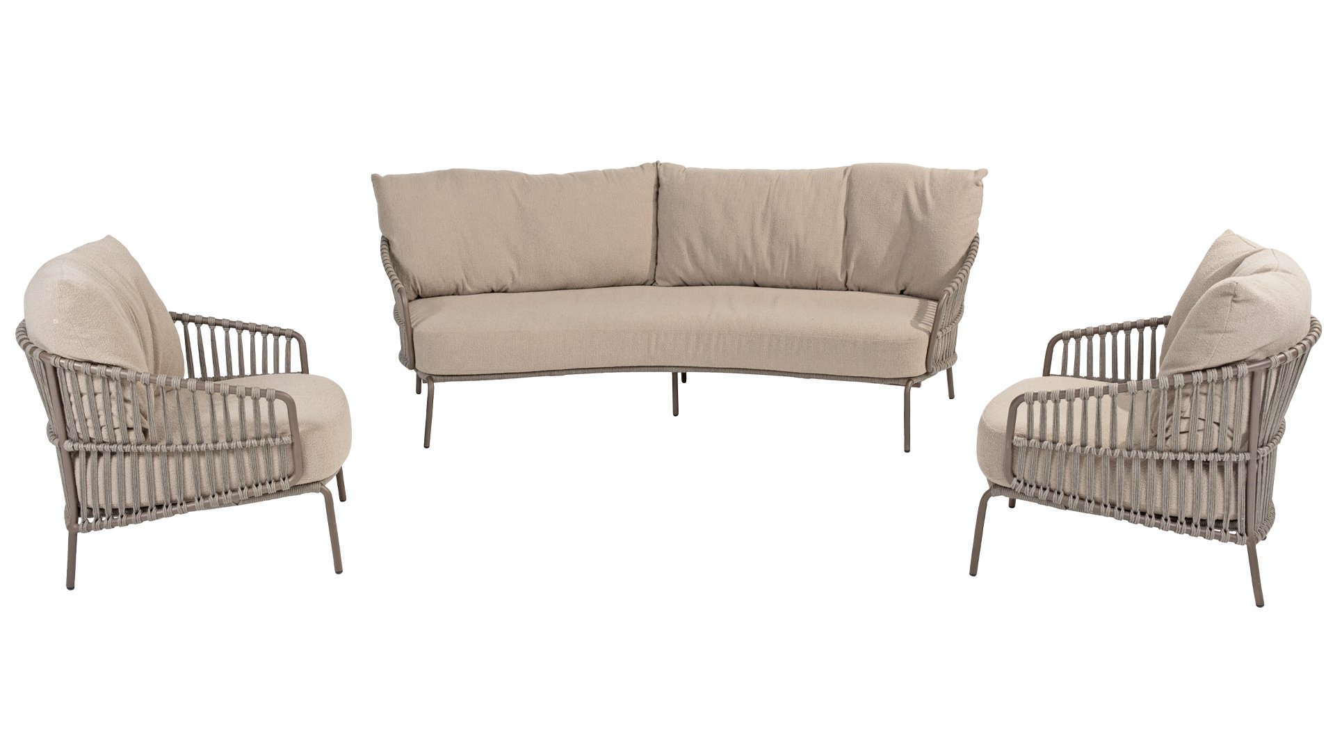 Erleben Sie den ultimativen Lounge-Komfort mit dem 4 Seasons Capalbio Sofa. Dieser Sofaist so konzipiert, dass Sie in den extra dicken Kissen aus weichem Bouclé-Stoff träumen können. Das moderne Design mit seinen eleganten Kurven und offenen Seilmustern verleiht jedem Garten eine stilvolle Note.