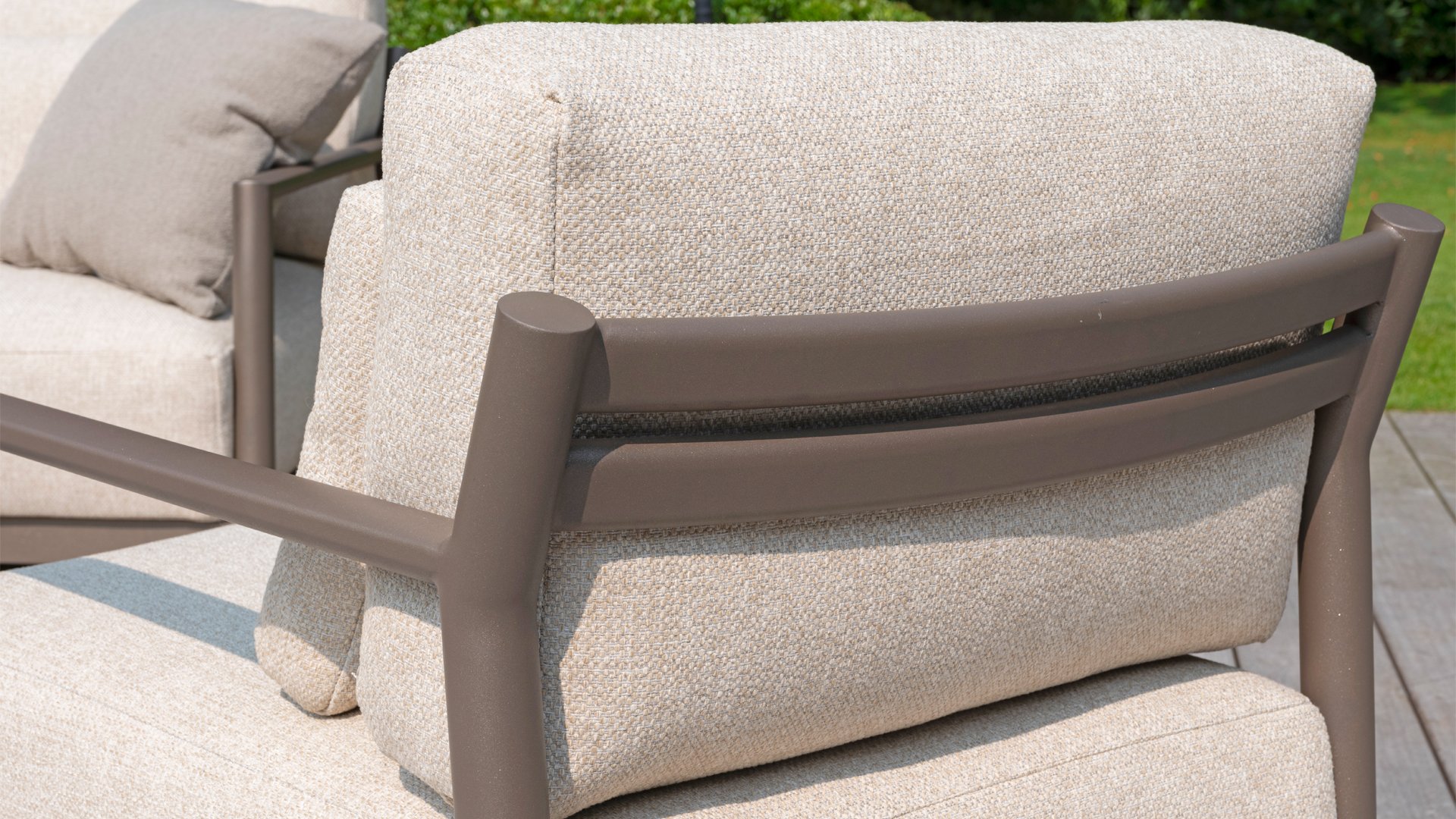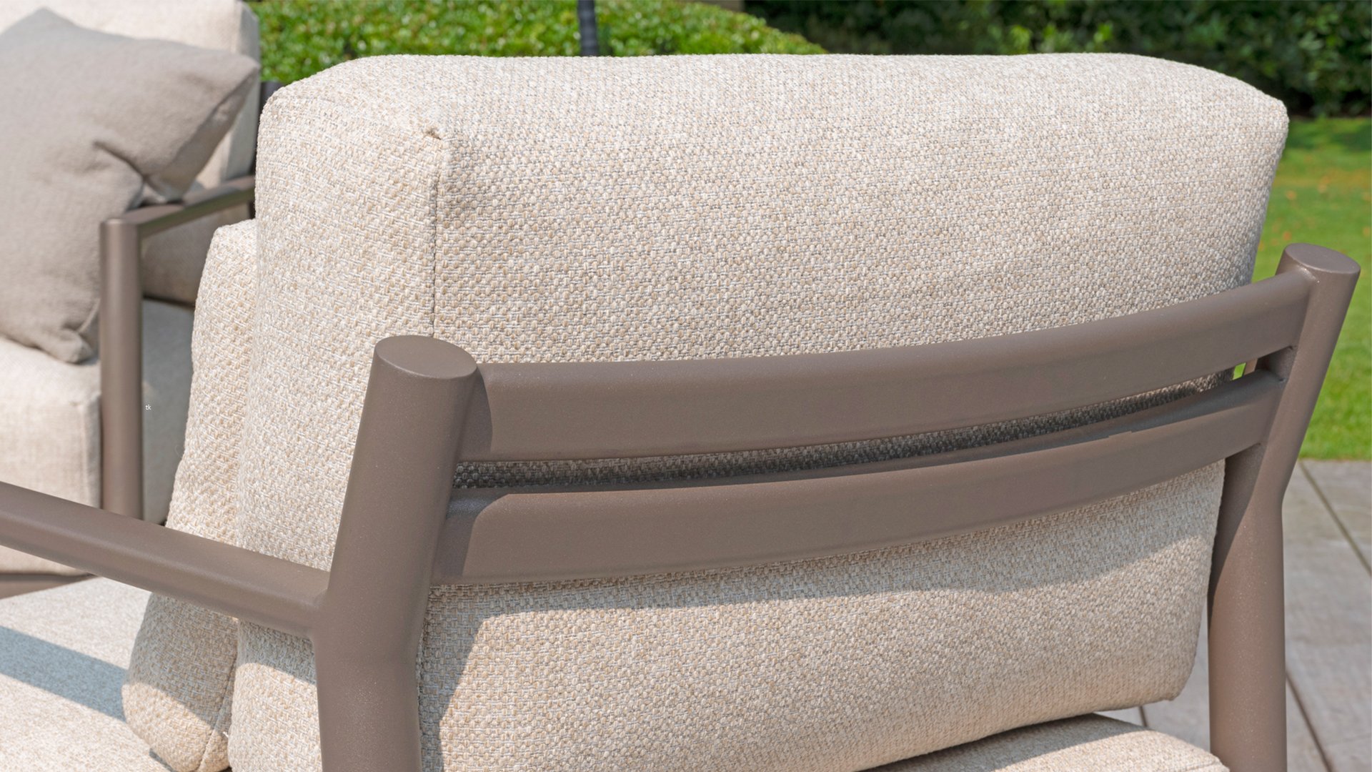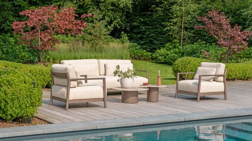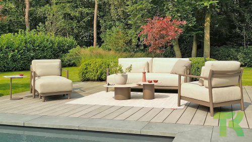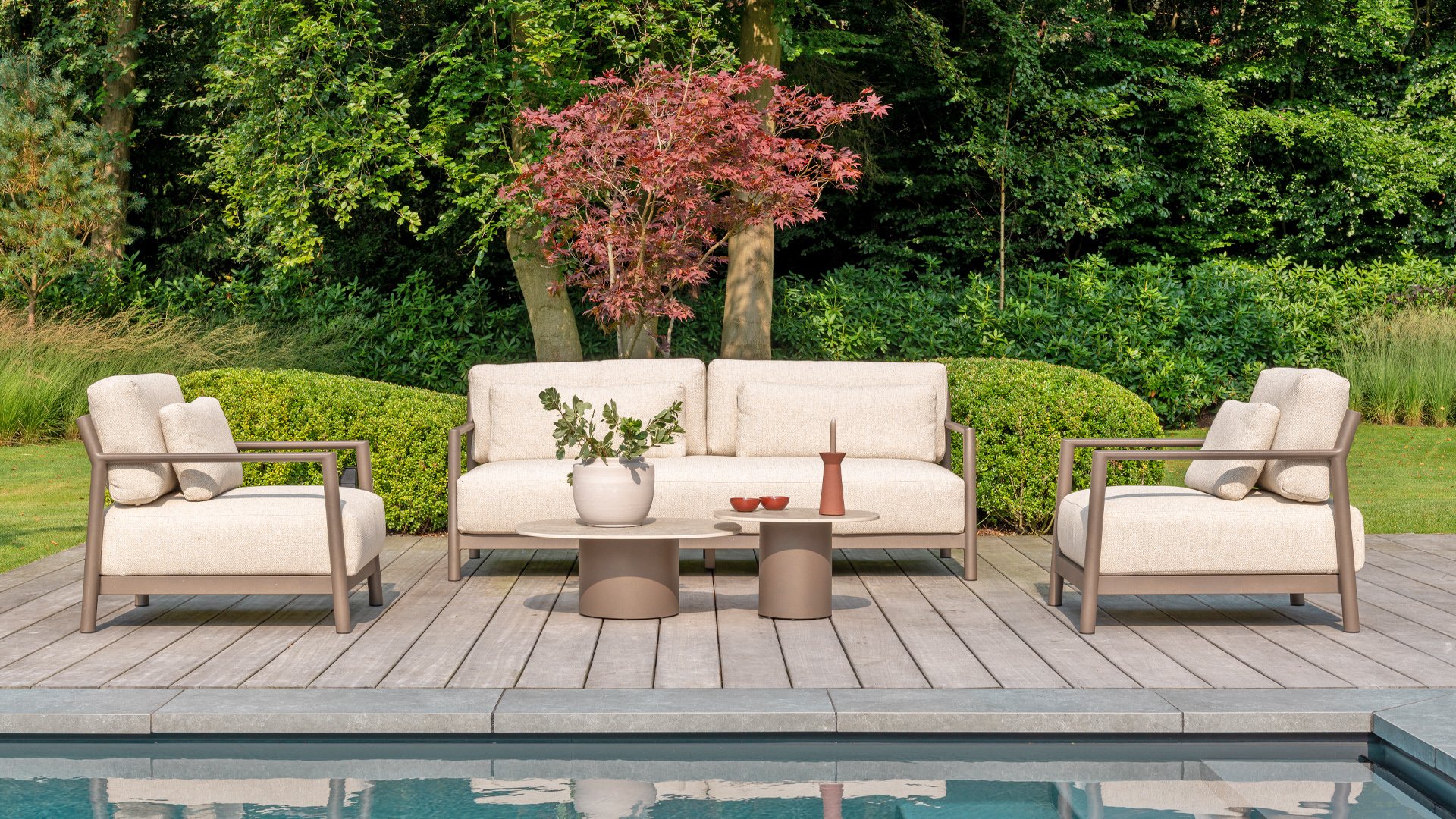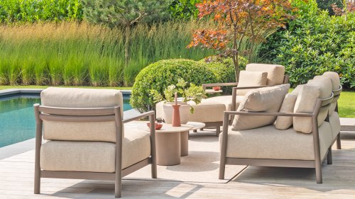 Erleben Sie ultimativen Komfort und stilvolle Schlichtheit mit der Capresi-Loungesets von 4 Seasons Outdoor. Dieses schöne Lounge-Set in der eleganten Terre-Farbe hat ein schlichtes Design, das perfekt zu modernen Gärten passt. Der vollständig aus Aluminium gefertigte Rahmen ist mit erhabenen Kurven gestaltet, während die dicken Lounge-Kissen für einen wunderbaren Kontrast und optimalen Komfort sorgen.