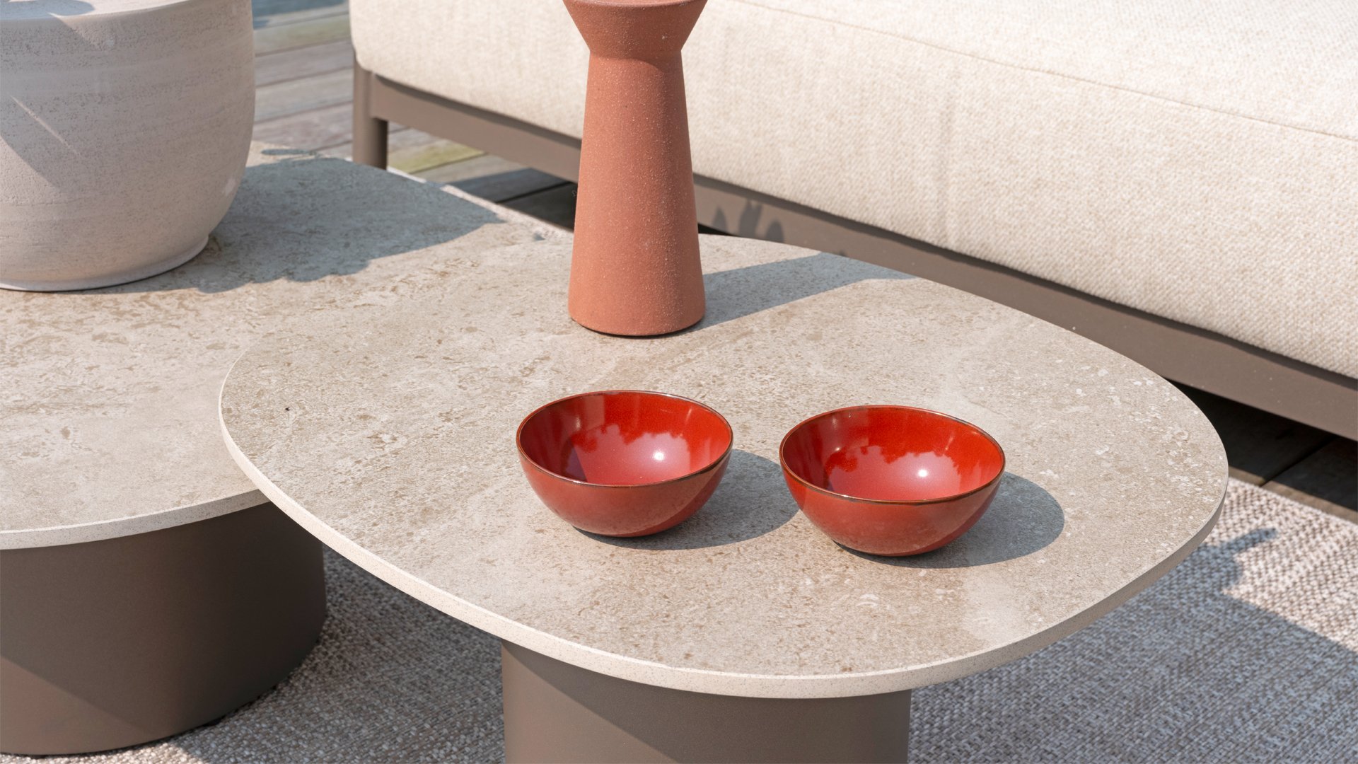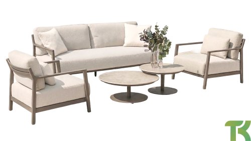 Klasse auf das Wesentliche reduziert. Lassen Sie sich vom zurückhaltenden Design von Capresi überraschen, bei dem wir die Details sprechen lassen. Der vollständig aus Aluminium gefertigte Rahmen in der Farbe Terre zeigt sublime Kurven, und die dicken Loungekissen sorgen für Kontrast und Komfort. Stellen Sie Ihre ideale Kombination zusammen und kombinieren Sie ein Sofa und/oder Stühle mit dem schönsten Couchtisch. Erleben Sie ultimativen Komfort und stilvolle Schlichtheit mit der Capresi-Loungesets von 4 Seasons Outdoor. Dieses schöne Lounge-Set in der eleganten Terre-Farbe hat ein schlichtes Design, das perfekt zu modernen Gärten passt. Der vollständig aus Aluminium gefertigte Rahmen ist mit erhabenen Kurven gestaltet, während die dicken Lounge-Kissen für einen wunderbaren Kontrast und optimalen Komfort sorgen.