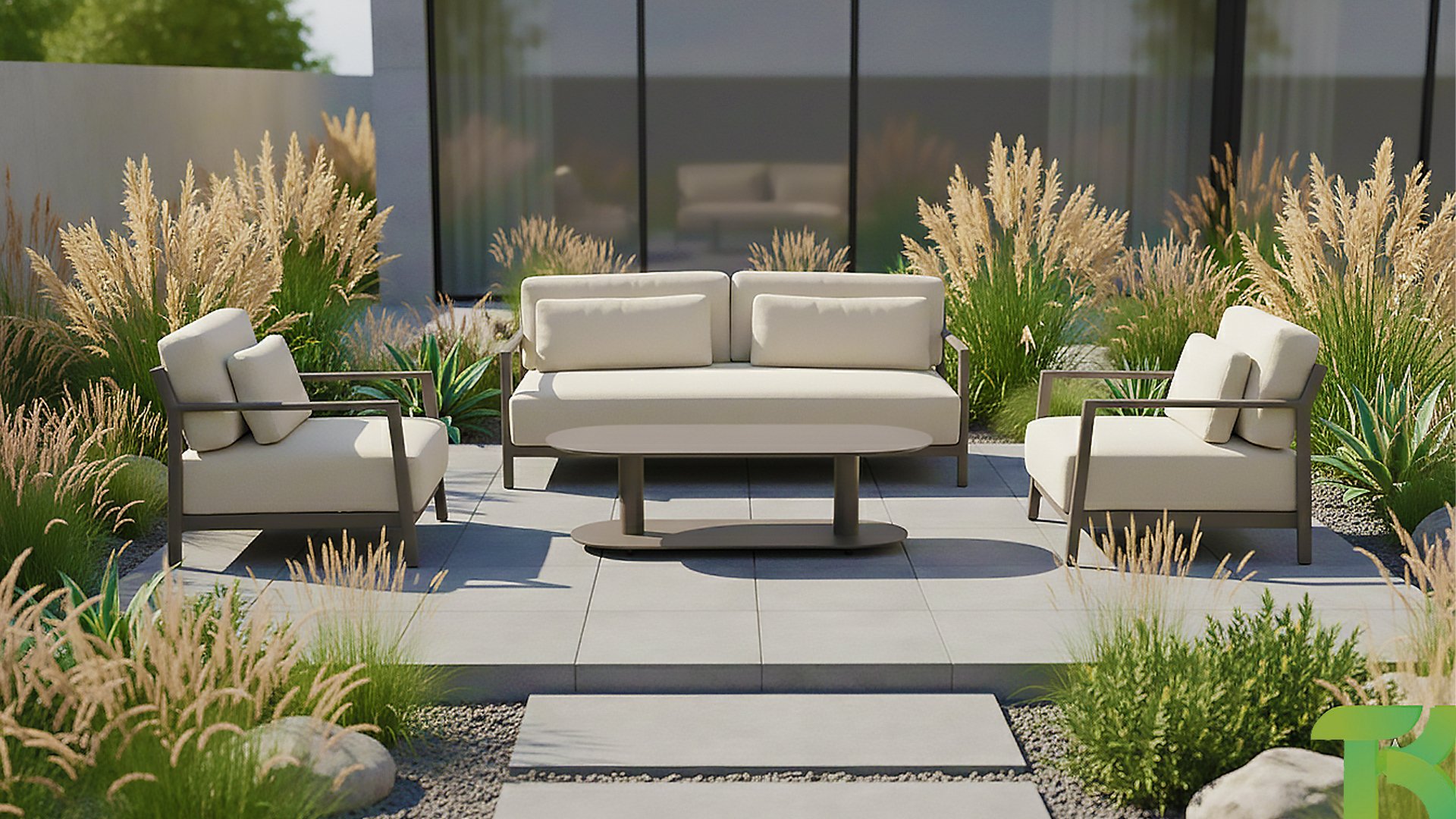 Kissen inklusive: Die Lounge ist mit bequemen Kissen ausgestattet, die ein angenehmes Sitzgefühl garantieren, perfekt für lange Abende im Freien.