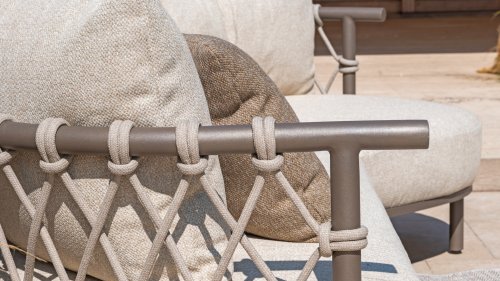 Erlebe Ultimativen Komfort und stilvolle Eleganz mit den Ezra Loungesets von 4 Seasons Outdoor. Dieses wunderschöne Loungeset in eleganter Terre-Farbe besticht durch ein herrliches Design, das perfekt zu zeitgemäßen Gärten passt. Der vollständig aus Aluminium gefertigte Rahmen ist mit erhabenen Rundungen gestaltet, während die dicken Loungekissen für einen herrlichen Kontrast und optimalen Komfort sorgen. In Kombination mit dem dicken Rope ein wunderschönes Set!