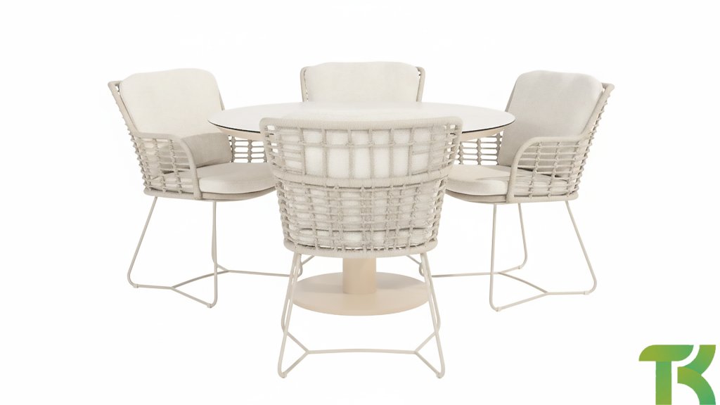 Aus den besten Materialien gefertigt, mit Leidenschaft hergestellt. Diese wunderschöne 4Seasons Fabrice Dining-Serie besticht nicht nur durch Stil, sondern auch durch hervorragenden Sitzkomfort. Der Stuhl ist auch in folgenden Farben erhältlich: Anthrazit, Latte & TerreDie verwendeten Materialien sind Kunststoffseil, Olefin & Aluminium. Kunststoffseil enthält einen Kern, der für Farbechtheit sorgt und es schimmelbeständig macht. Olefin macht die Kissen ebenfalls farbecht und wasserbeständig, der Stoff fühlt sich auch angenehm an. Das Gestell des Fabrice ist pulverbeschichtetes Aluminium, um das moderne Design abzurunden! Auch erhältlich in Lounge: 4SO Fabrice Eck-Loungeset & 4SO Fabrice Loungeset.