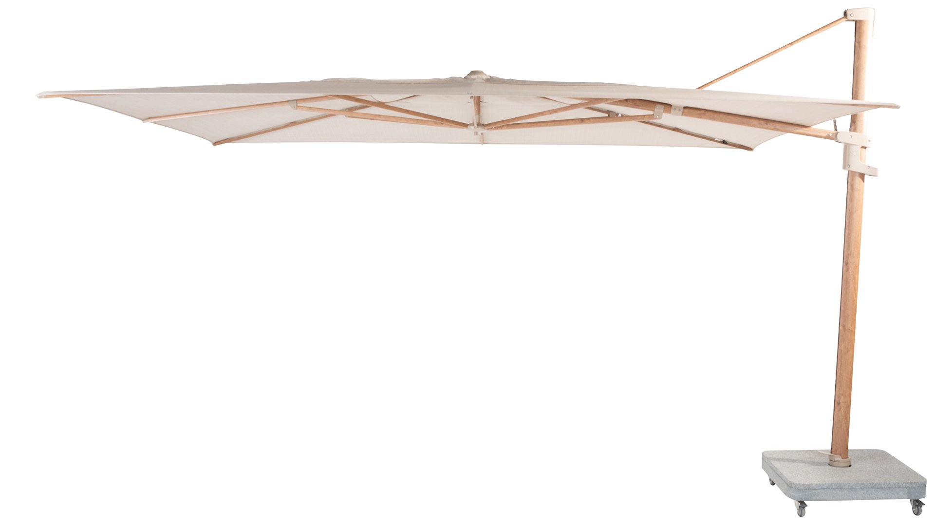 Der 4Seasons-Hängearmschirm ist inzwischen ein echter Klassiker. Dieser Schwebeschirm hat seine Qualität bereits bewiesen. Der Schirm ist nach hinten kippbar, um die tief stehende Sonne abzufangen. Der Schirm ist auch auf dem Sockel drehbar. Weitere Informationen finden Sie im Video. Standardmäßig 5 Jahre Garantie.