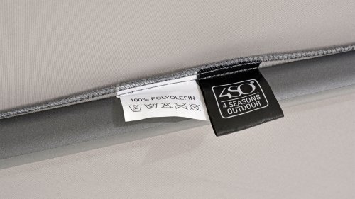 4 Seasons Outdoor verwendet Solefin Stoff für seine unübertroffene Qualität und Haltbarkeit. Das Gewebe ist sowohl chemisch als auch umweltschädlich und ist unglaublich pflegeleicht. Die meisten üblichen Verschmutzungen und Flecken können leicht mit Wasser und in einigen Fällen mit milder Seife gereinigt werden.