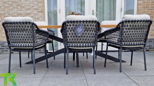 Juras natürliche Schönheit. Wunderschön an einem anthrazitfarbenen Tisch und dazu stapelbar. Nehmen Sie Platz und genießen Sie. Erleben Sie die perfekte Kombination aus Komfort, Aussehen und modernem Design mit dem 4SO Jura Dining Anthrazit. Dieser Stuhl wird mit Kissen geliefert. Der Jura hat ein attraktives anthrazitfarbenes Seilgeflecht und ein elegantes anthrazitfarbenes Edelstahlgestell. Der Jura ist auch in Olive erhältlich, siehe hier: 4 Seasons Outdoor Jura Gartenset Olive.
