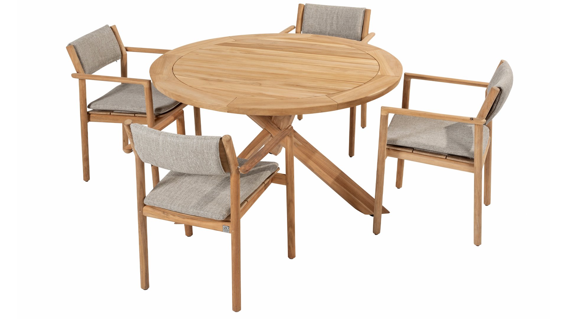 Das Flaggschiff der Kollektion, so kann man diesen Tisch ruhig bezeichnen. Das hochwertige Teakholz in Kombination mit dem schönen Kreuzfuß machen diesen Taste by 4Seasons Prado Ø130cm Tisch zu einem Schmuckstück. Er lässt sich mit nahezu jedem Esszimmerstuhl aus unserer Kollektion kombinieren, sodass für jeden Geschmack etwas dabei ist. Optional kann er mit Prado Lazy Susan kombiniert werden. Die Platte ist sowohl in Teakholz als auch in Keramik erhältlich. Der Prado mit Teakholzplatte ist mit den Tischbeinen Teak, Latte und Anthrazit erhältlich. Sie lieben Keramik? Dann entdecken Sie hier den Prado Keramik mit den Tischbeinen Terre & Latte.