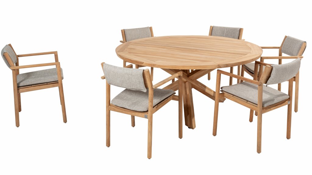 Gartenmöbel aus Teakholz bieten einen atemberaubenden Blick.Teakholz eignet sich besonders gut für den Einsatz im Außenbereich. Es ist resistent gegen Schädlinge und Pilze und widerstandsfähig gegen Sonne, Regen und Schnee. Mit der Zeit entwickelt das Teakholz eine silbergraue Patina. Gartenmöbel aus Teakholz bieten einen atemberaubenden Blick. Darüber hinaus ist es starkes Material und erfordert nur wenig Wartung. Wer die ursprüngliche Farbe des Teakholzes bevorzugt, kann durch regelmäßiges benutzen unser Pflegemittel ganz einfach das Vergrauen des Holzes verhindern.Darüber hinaus können Sie Teak mit grüner Seife reinigen. Durch Temperaturunterschiede und durch den Wechsel von Feuchtigkeit und Trockenheit können kleine Haarrisse entstehen. Es ist üblich, dass Man in dies Unvollkommenheiten findet, diese Unregelmäßigkeiten sind kennzeichnend für dieses Produkt. Diese Unregelmäßigkeiten können nie einen Anlass zu Reklamation, Garantie oder Claim formen. Es betrifft eine Unterschrift von Originalität! Wir gewähren Garantie auf alle Produktions- und Konstruktionsfehler. Die Wirkung von Teakholz ist nicht enthalten. Wenn Sie sich für Teakholz entscheiden, erwarten wir, dass Sie diese Eigenschaften zu schätzen wissen. Eventuell auftretende Haarrisse, Äste im Teakholz und raue Oberflächen im Laufe der Zeit fallen nicht unter unsere Garantie. Diese Eigenschaften verleihen dem Teakholz seinen eigenen Charakter und sind Teil der Optik. Seien Sie vorsichtig mit einem Blumentopf oder einer Vase auf Ihrem Gartentisch aus Teakholz, da dies zu hartnäckigen Kreisen oder Farbunterschieden führen kann.