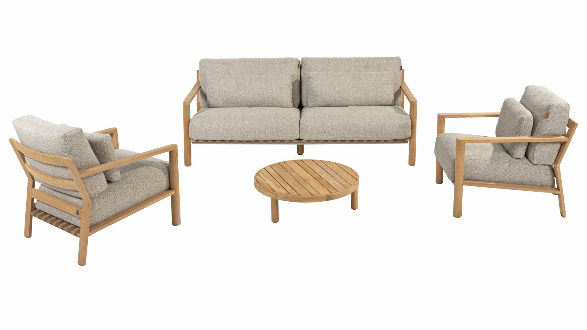 Natürliches Aussehen: Das Teakholz verleiht der Lounge ein warmes und natürliches Aussehen, das sich perfekt in verschiedene Außenumgebungen einfügt.