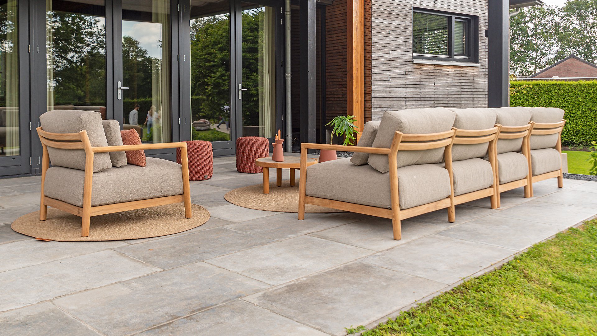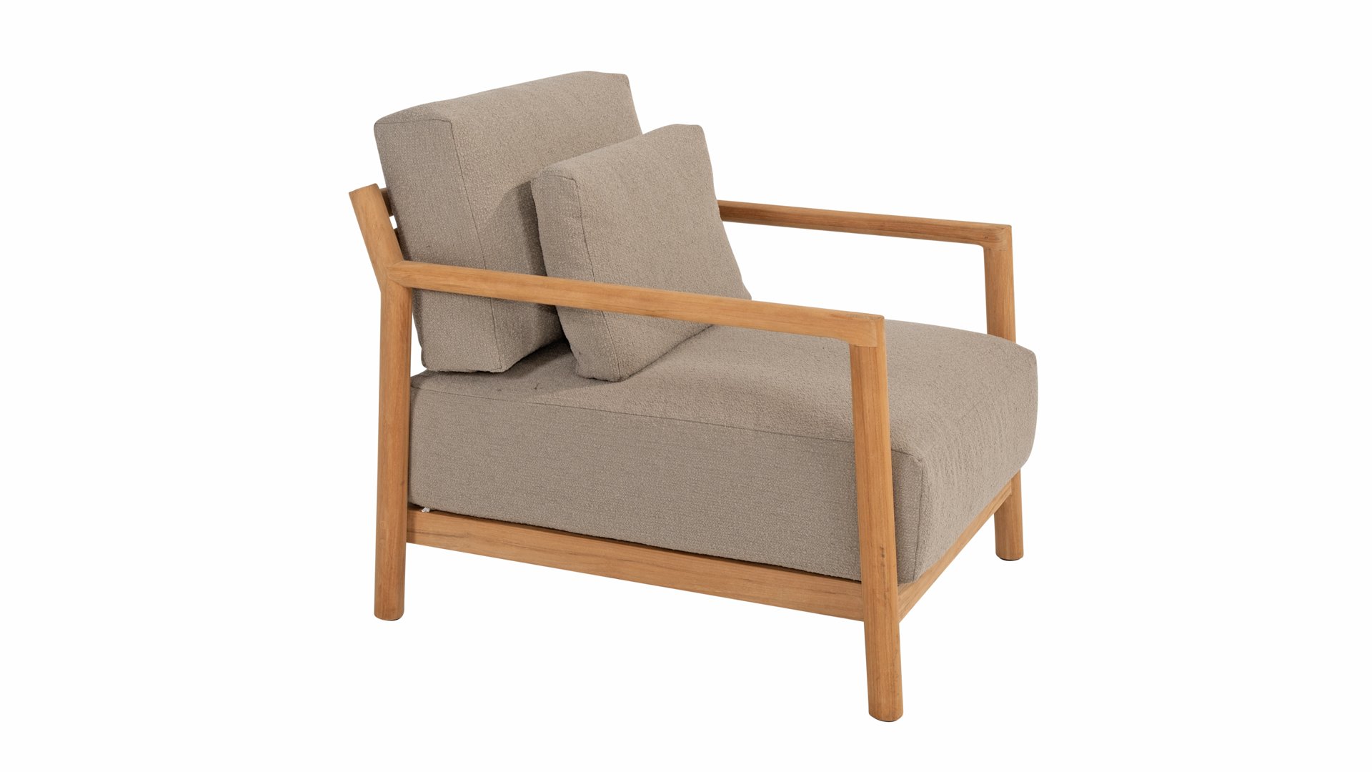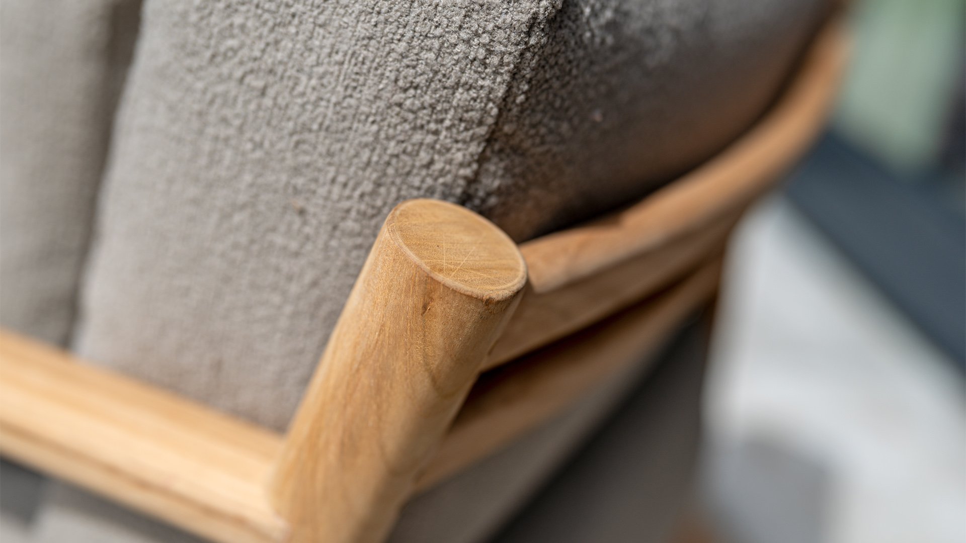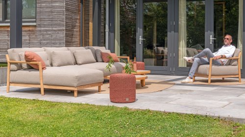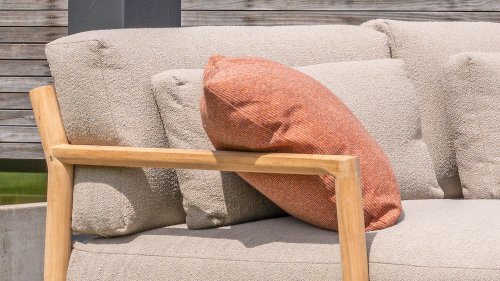 Entdecken Sie die perfekte Kombination aus Stil und Komfort mit unserem wunderschönen TeakholzLoungeset 4Seasons Outdoor Marie! Diese Garnitur besteht aus hochwertigem Teakholz, bekannt für seine Langlebigkeit und Wetterbeständigkeit. Die warmen Bouclé-Kissen sorgen für ein luxuriöses Aussehen und optimalen Sitzkomfort, ideal für jeden Außenbereich.