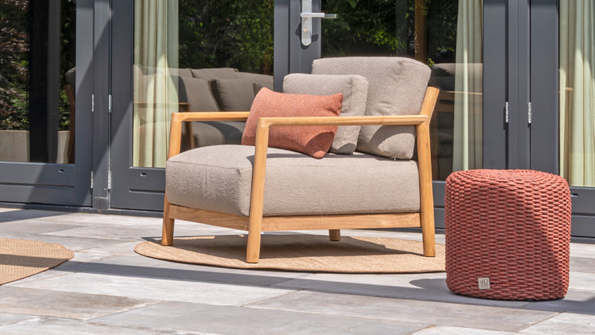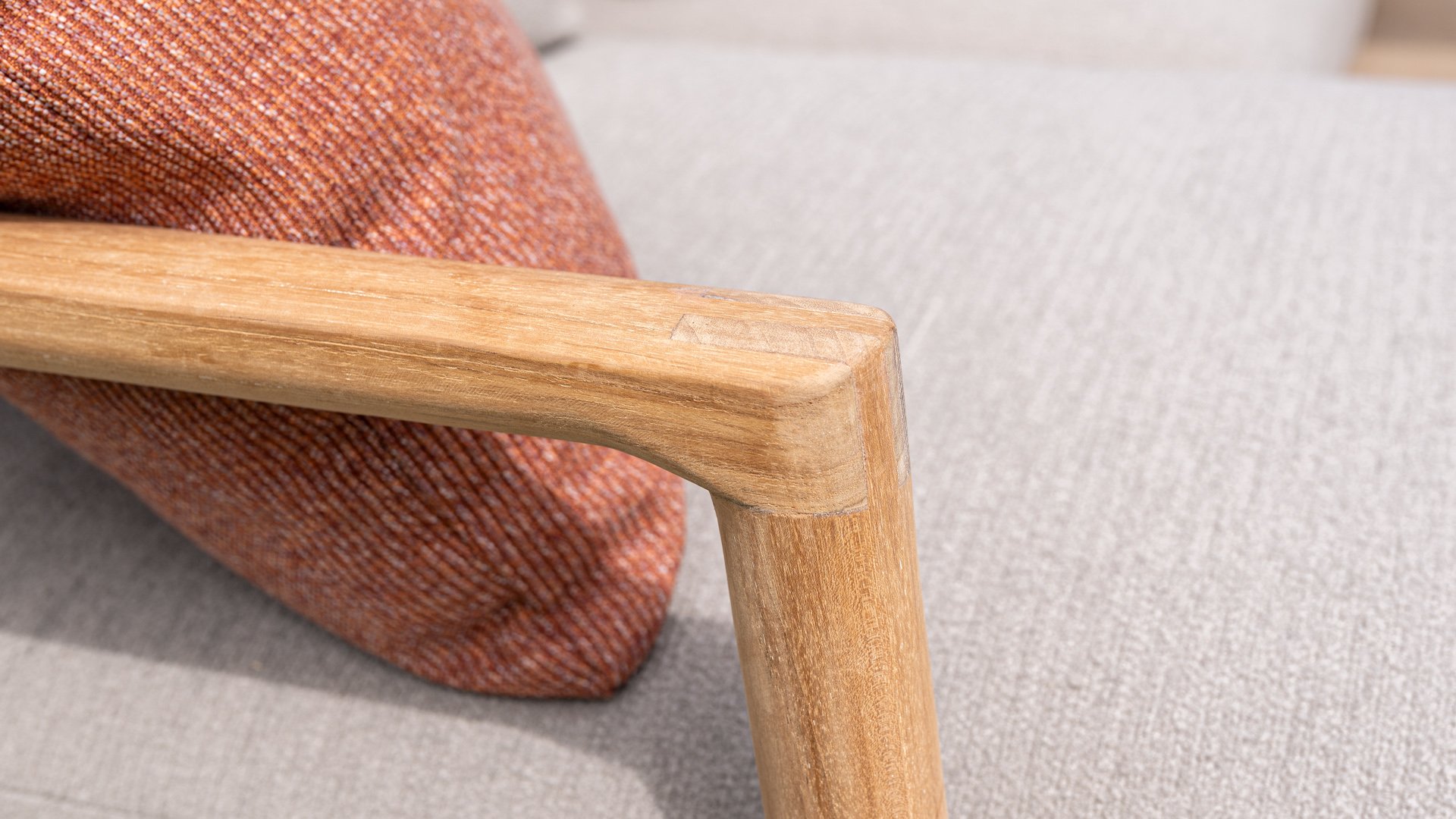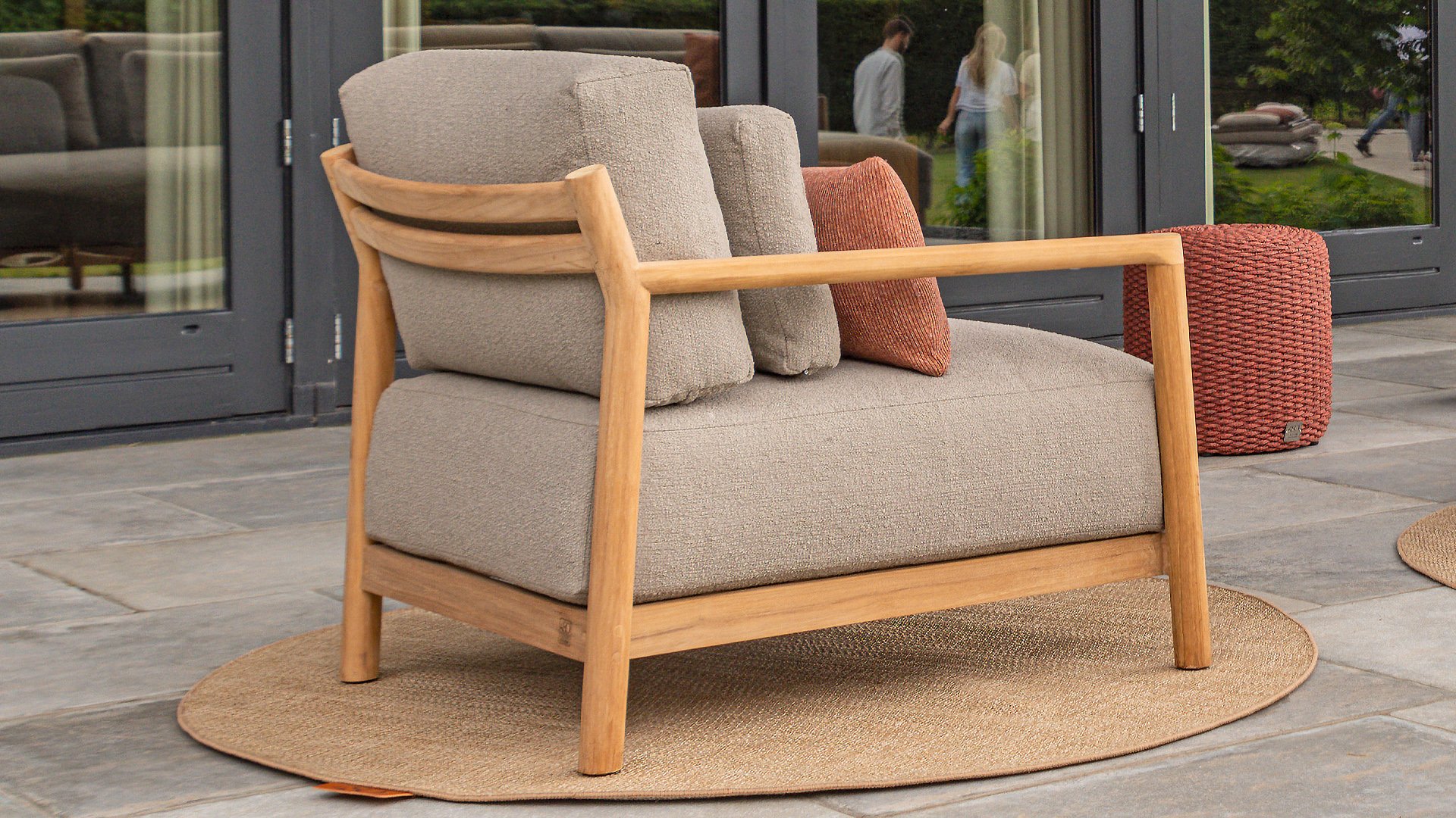 Entdecken Sie die perfekte Kombination aus Stil und Komfort mit unserem wunderschönen TeakholzLoungeset 4Seasons Outdoor Marie! Diese Garnitur besteht aus hochwertigem Teakholz, bekannt für seine Langlebigkeit und Wetterbeständigkeit. Die warmen Bouclé-Kissen sorgen für ein luxuriöses Aussehen und optimalen Sitzkomfort, ideal für jeden Außenbereich.