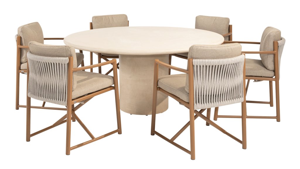 Der 4 Seasons Outdoor Marina Amber Gartenmobelset ist für alle, die elegante, konturierte Möbel schätzen. Das Gestell besteht aus pulverbeschichtetem Aluminium in einem warmen Erdton, kombiniert mit luftigen Seitenteilen und einer Rückenlehne aus Seilgeflecht für einen luxuriösen Look. Die wetterbeständigen Olefin-Kissenbezüge sind UV- und schimmelresistent – ​​ideal für jahrelangen Einsatz im Freien.Diese Dining Serie zeichnet sich durch folgende Eigenschaften aus: Langlebiges Material, Stilvolles Erscheinungsbild, Modernes Erscheinungsbild, Natürliches Erscheinungsbild, Kissen inklusive.