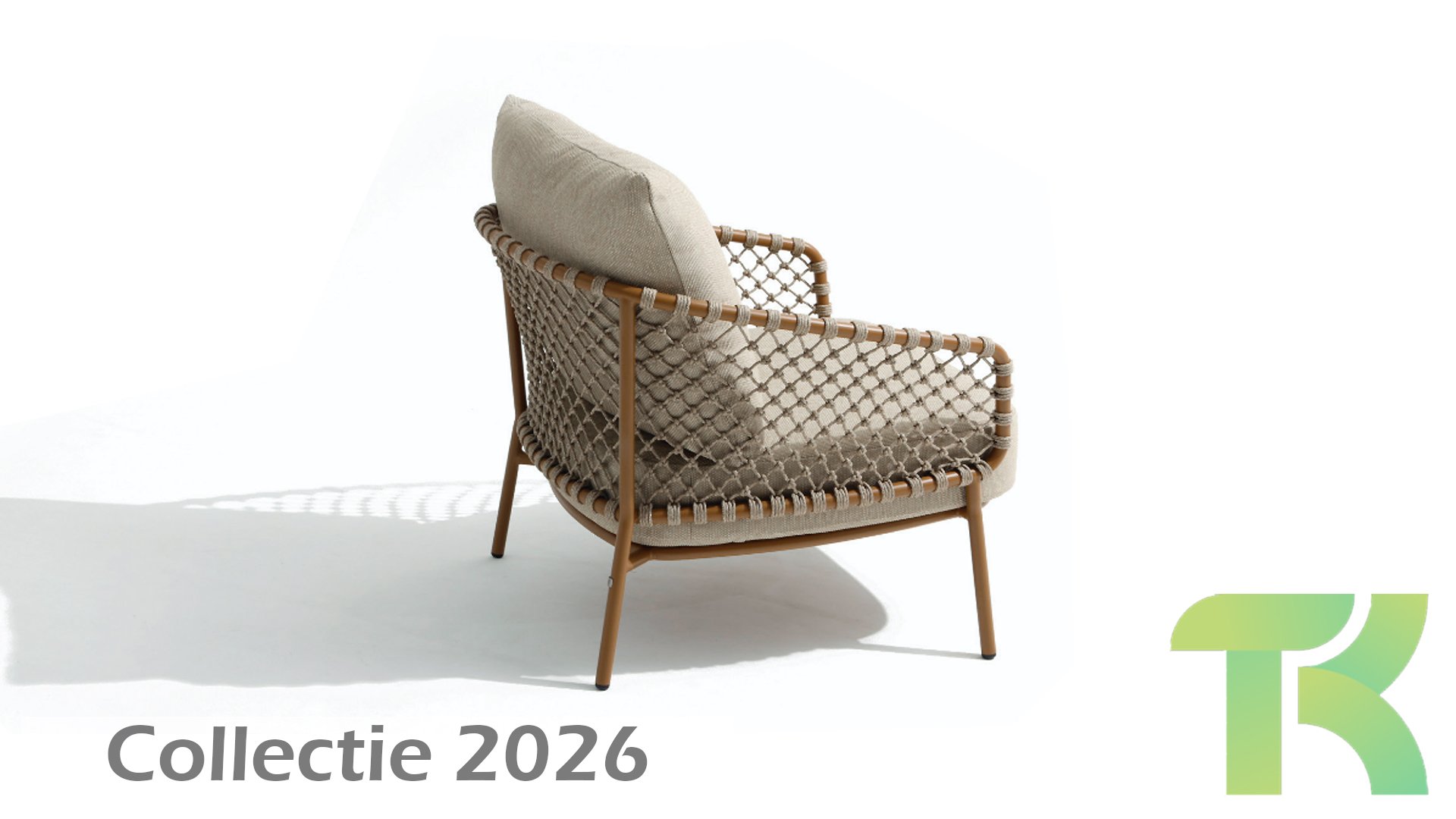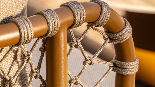 Der Rahmen besteht aus pulverbeschichtetem Aluminium in Terrakotta (Bernstein) und erzeugt zusammen mit dem Seilgeflecht einen luxuriösen Look.