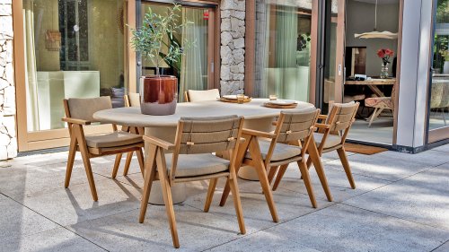 Gartenmöbel aus Teakholz bieten einen atemberaubenden Blick.Teakholz eignet sich besonders gut für den Einsatz im Außenbereich. Es ist resistent gegen Schädlinge und Pilze und widerstandsfähig gegen Sonne, Regen und Schnee. Mit der Zeit entwickelt das Teakholz eine silbergraue Patina. Gartenmöbel aus Teakholz bieten einen atemberaubenden Blick. Darüber hinaus ist es starkes Material und erfordert nur wenig Wartung. Wer die ursprüngliche Farbe des Teakholzes bevorzugt, kann durch regelmäßiges benutzen unser Pflegemittel ganz einfach das Vergrauen des Holzes verhindern.Darüber hinaus können Sie Teak mit grüner Seife reinigen. Durch Temperaturunterschiede und durch den Wechsel von Feuchtigkeit und Trockenheit können kleine Haarrisse entstehen. Es ist üblich, dass Man in dies Unvollkommenheiten findet, diese Unregelmäßigkeiten sind kennzeichnend für dieses Produkt. Diese Unregelmäßigkeiten können nie einen Anlass zu Reklamation, Garantie oder Claim formen. Es betrifft eine Unterschrift von Originalität!  Wir gewähren Garantie auf alle Produktions- und Konstruktionsfehler. Die Wirkung von Teakholz ist nicht enthalten. Wenn Sie sich für Teakholz entscheiden, erwarten wir, dass Sie diese Eigenschaften zu schätzen wissen. Eventuell auftretende Haarrisse, Äste im Teakholz und raue Oberflächen im Laufe der Zeit fallen nicht unter unsere Garantie. Diese Eigenschaften verleihen dem Teakholz seinen eigenen Charakter und sind Teil der Optik. Seien Sie vorsichtig mit einem Blumentopf oder einer Vase auf Ihrem Gartentisch aus Teakholz, da dies zu hartnäckigen Kreisen oder Farbunterschieden führen kann.