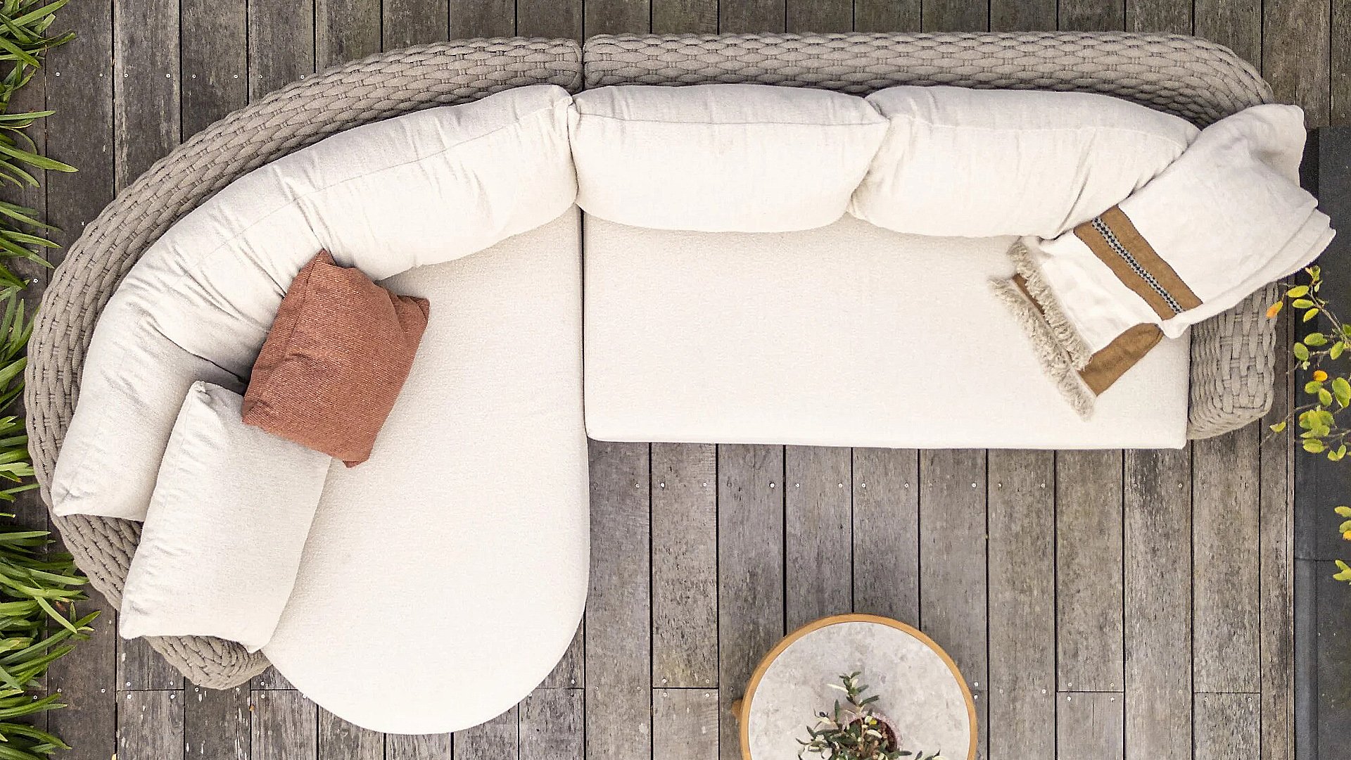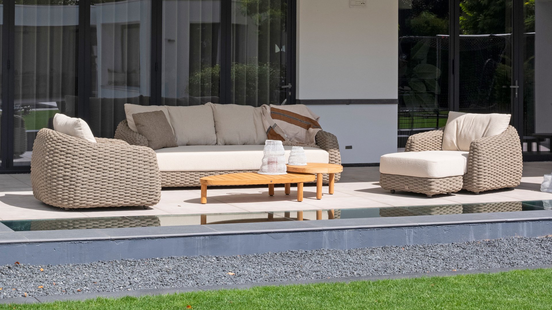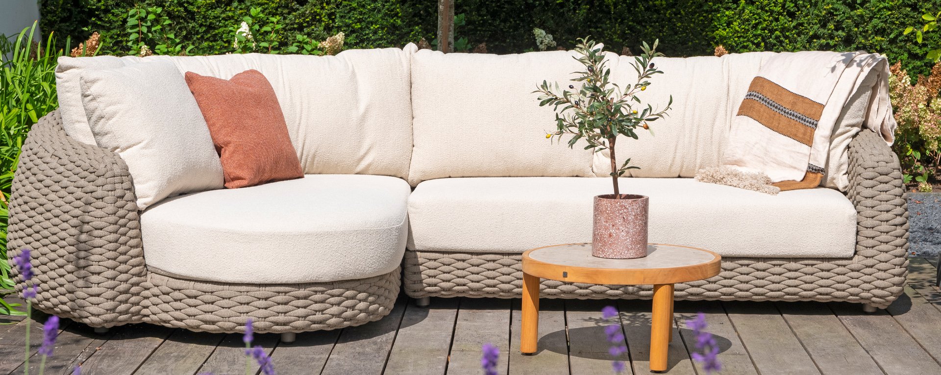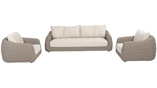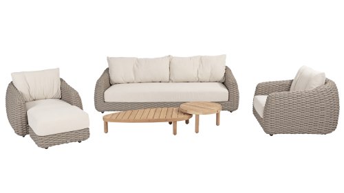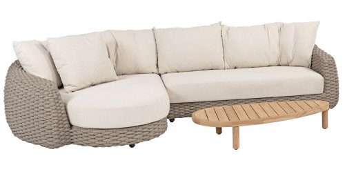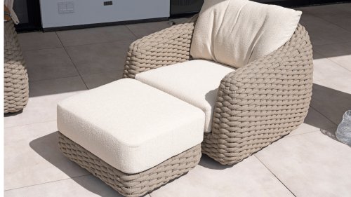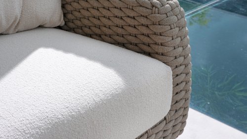 Ich liebe Maxime. Mit Maxime richten Sie Ihre luxuriöse Terrasse wunderschön ein, denn diese vollständig gewebte, üppige Loungeserie ist ein Augenschmaus mit ihrem wunderschönen organischen Design. Die dicken Loungekissen aus cremefarbenem Bouclé-Stoff sorgen für totale Entspannung. Wählen Sie Ihre ideale Konfiguration und genießen Sie Ihren luxuriösen Garten.