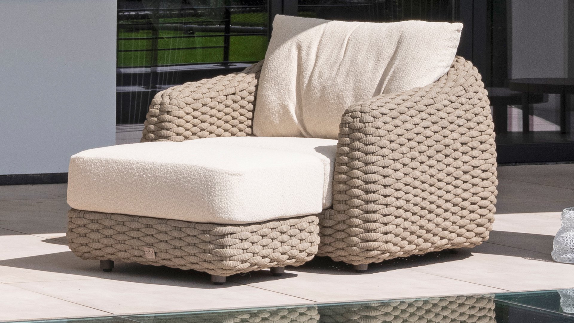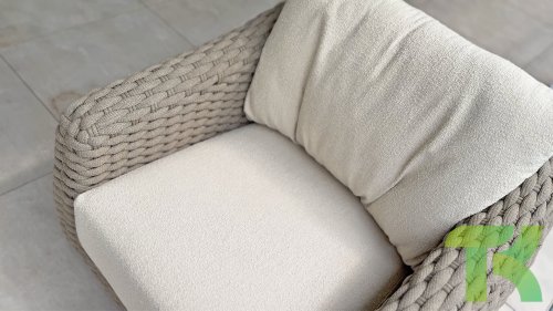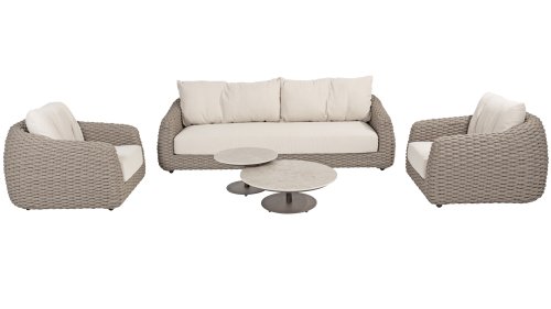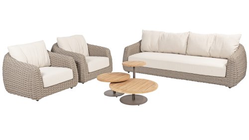 Verbessern Sie Ihr Lounge-Erlebnis mit der Maxime-Lounge von 4 Seasons Outdoor. Dieses Lounge-Set ist eine perfekte Ergänzung für Ihre luxuriöse Terrasse. Die schönen Kurven sind eine Augenweide, während die dicken Loungekissen aus cremefarbenem Bouclé-Stoff für absolute Entspannung sorgen. Das 4 Seasons Outdoor Lounge-Set besticht durch sein markantes Design und bietet sehr geräumigen und bequemen Sitzkomfort. Neben dicken Kissen sorgt auch der unglaublich weiche Bouclé-Kissenstoff für sehr angenehmen Lounge-Komfort. Es fühlt sich an, als ob Sie auf dem Stuhl in Ihrem Wohnzimmer sitzen würden, der Stoff ist so angenehm weich. Der Sitzkomfort ist daher äußerst hoch.