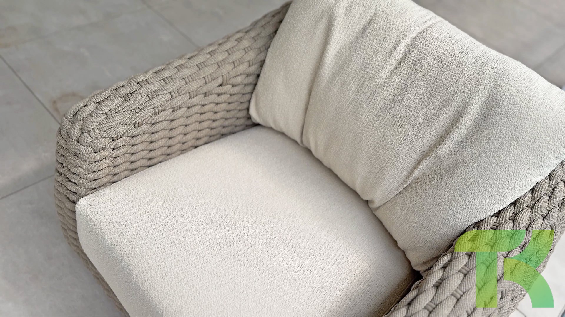 Kissen im Lieferumfang enthalten: Das Lounge-Set wird mit bequemen Kissen geliefert und schafft so einen einladenden und entspannenden Ort, an dem Sie Ihren Außenbereich genießen können. Der Bouclé-Stoff ist voll im Trend und ein neuer Trend bei Gartenmöbeln.