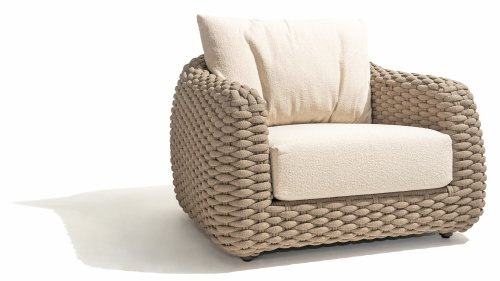 Luxuriöses Design: Die vollständig gewebte Oberfläche und die eleganten Kurven machen diesen Stuhl zu einer auffälligen Ergänzung für jede Gartenumgebung.