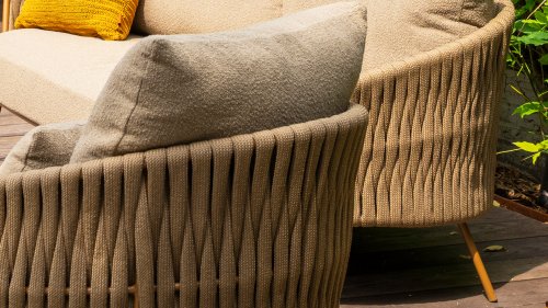 Dieses wunderschöne Material eignet sich perfekt für den Außenbereich, denn Rope ist nicht nur eine normale Spitze, an der Sie Ihre Schuhe binden können. Unsere runden Fäden sind mit einem Kunststoffkern versehen. Diese Basis aus Polypropylen sorgt dafür, dass sich das Rope minimal dehnt und sie nimmt außerdem keine Feuchtigkeit auf. Die Umhüllung besteht aus Acrylstoff, der mit dem wetterfesten Stoff unserer Gartenkissen vergleichbar ist. Diese Umhüllung fühlt sich weich an und ist sehr wasserabweisend, UV-beständig und farbecht. Die flachen Rope-Varianten besitzen den gleichen wetterfesten Materialmix, doch das Polypropylen-Material wurde hier mit dem Acryl-Stoff verwebt. Durch diese Technik besitzt das flache Rope die gleichen Eigenschaften, hat jedoch eine ganz andere Ausstrahlung.