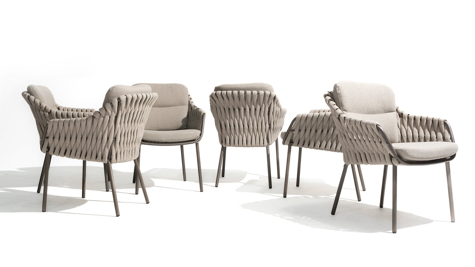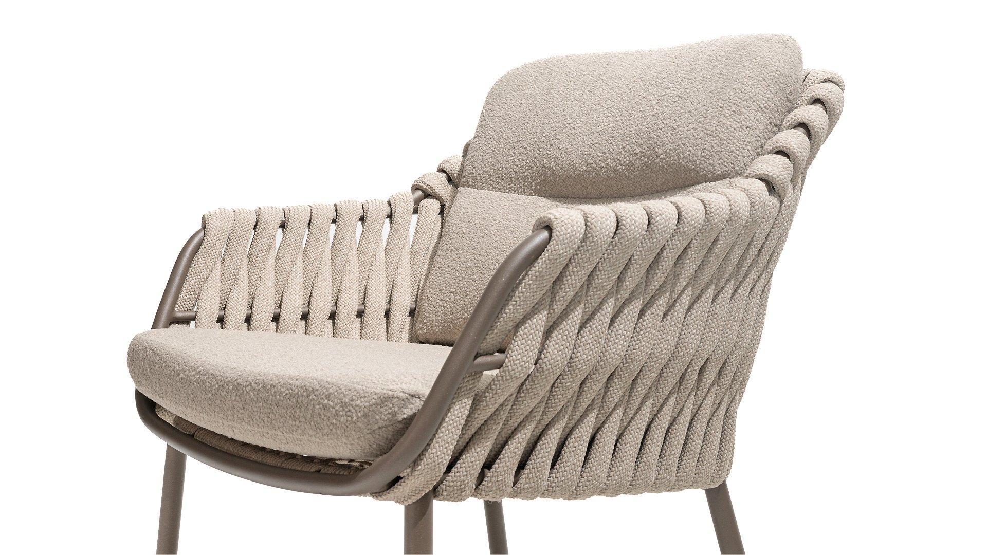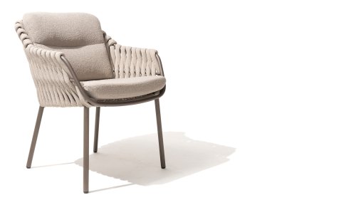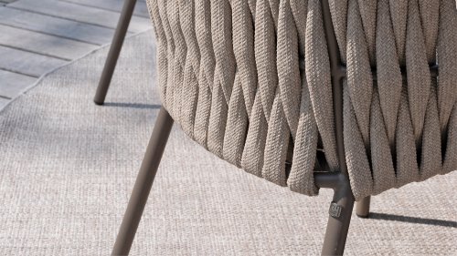 Die Sitzfläche ist aus Seildraht gefertigt, was nicht nur stilvoll, sondern auch wetterbeständig ist, wodurch sich der Stuhl perfekt für den Einsatz im Garten eignet. Das Gestell besteht aus pulverbeschichtetem Stahl/Aluminium in der Farbe Terre und bildet zusammen mit taupefarbenen Bouclé-Kissen und tonfarbenem Seildraht ein stimmiges und elegantes Ganzes. Neben dem Gartenstuhl gibt es den Montera auch in einer Lounge-Version, die sich ideal für entspannte Momente im Freien eignet.