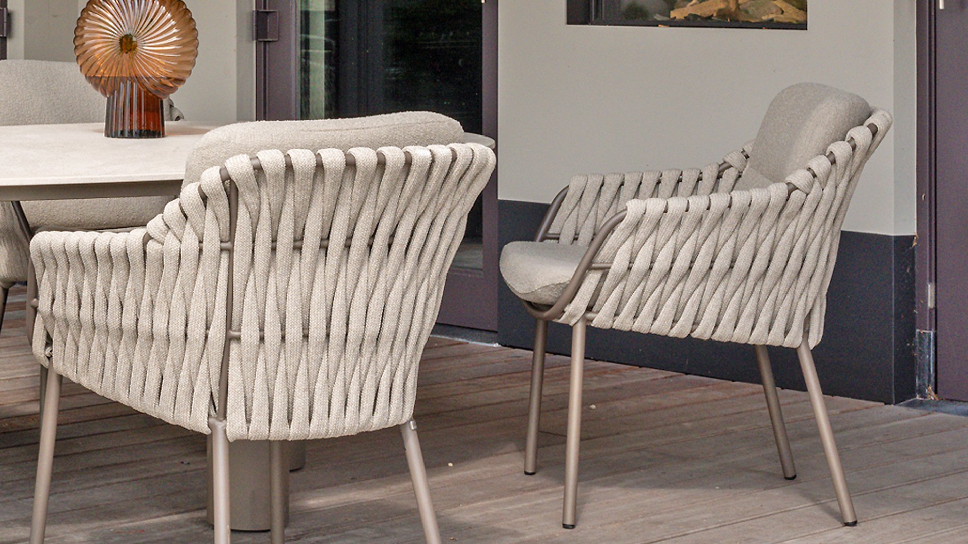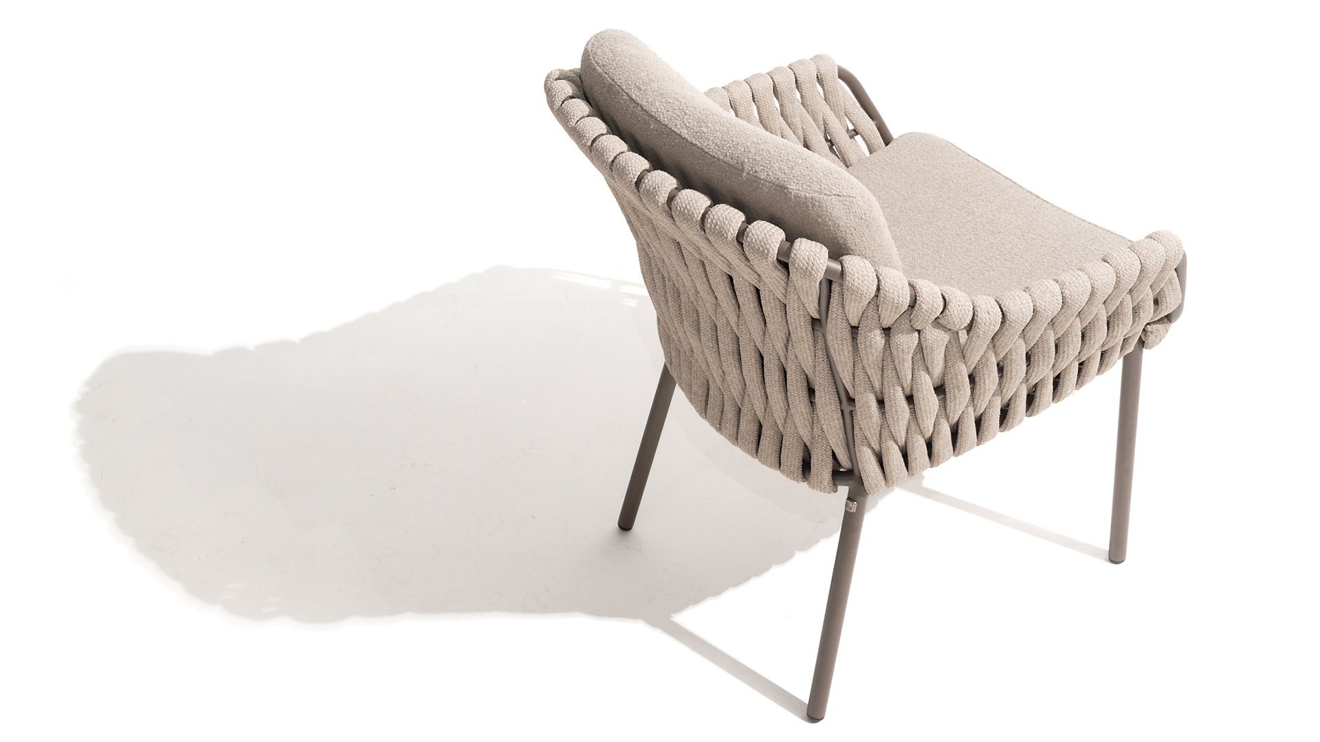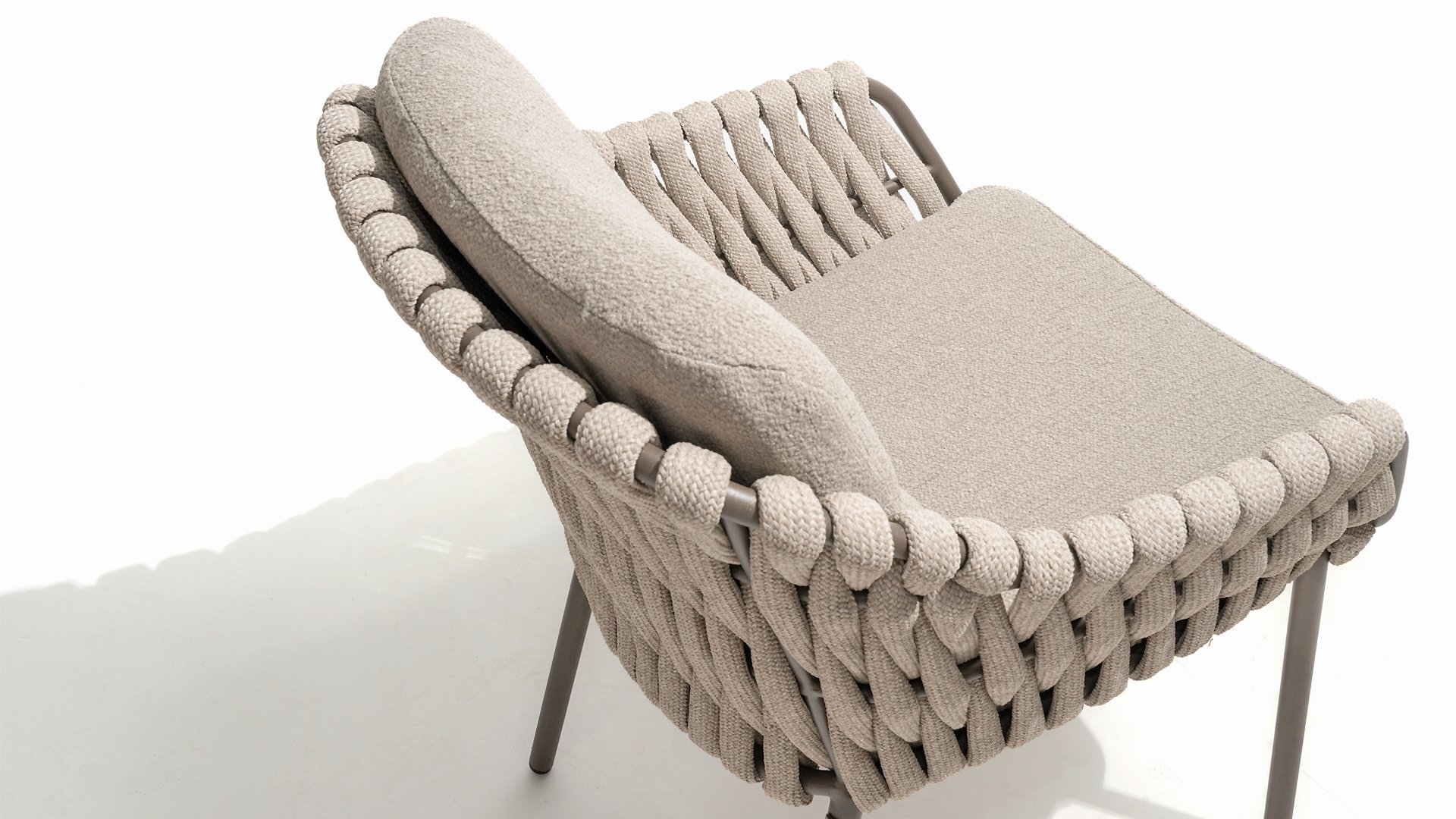 Die Sitzfläche ist aus Seildraht gefertigt, was nicht nur stilvoll, sondern auch wetterbeständig ist, wodurch sich der Stuhl perfekt für den Einsatz im Garten eignet. Das Gestell besteht aus pulverbeschichtetem Stahl/Aluminium in der Farbe Terre und bildet zusammen mit taupefarbenen Bouclé-Kissen und tonfarbenem Seildraht ein stimmiges und elegantes Ganzes. Neben dem Gartenstuhl gibt es den Montera auch in einer Lounge-Version, die sich ideal für entspannte Momente im Freien eignet.