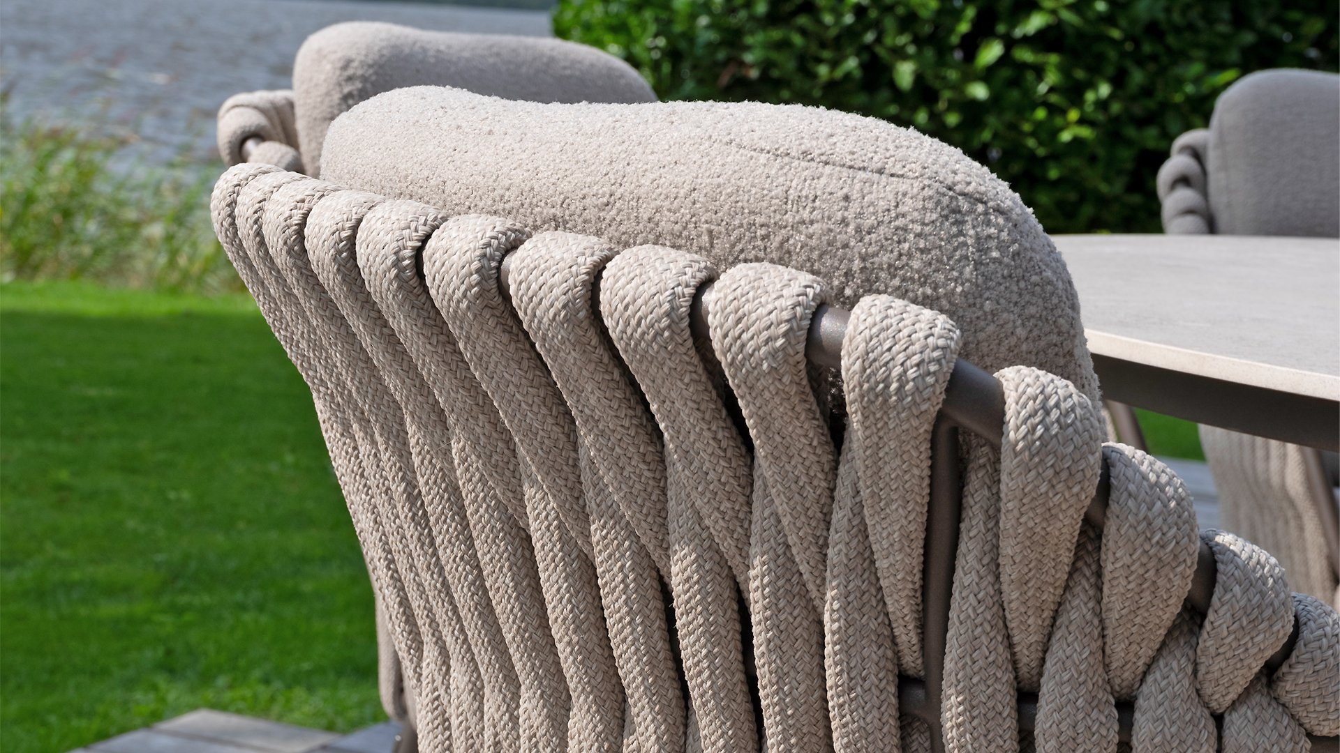 Dieses wunderschöne Material eignet sich perfekt für den Außenbereich, denn Rope ist nicht nur eine normale Spitze, an der Sie Ihre Schuhe binden können. Unsere runden Fäden sind mit einem Kunststoffkern versehen. Diese Basis aus Polypropylen sorgt dafür, dass sich das Rope minimal dehnt und sie nimmt außerdem keine Feuchtigkeit auf. Die Umhüllung besteht aus Acrylstoff, der mit dem wetterfesten Stoff unserer Gartenkissen vergleichbar ist. Diese Umhüllung fühlt sich weich an und ist sehr wasserabweisend, UV-beständig und farbecht. Die flachen Rope-Varianten besitzen den gleichen wetterfesten Materialmix, doch das Polypropylen-Material wurde hier mit dem Acryl-Stoff verwebt. Durch diese Technik besitzt das flache Rope die gleichen Eigenschaften, hat jedoch eine ganz andere Ausstrahlung.