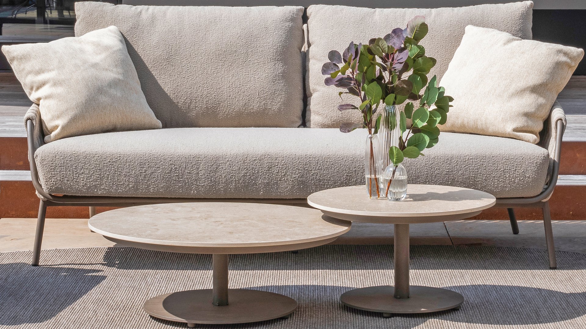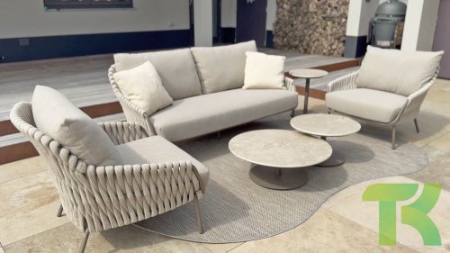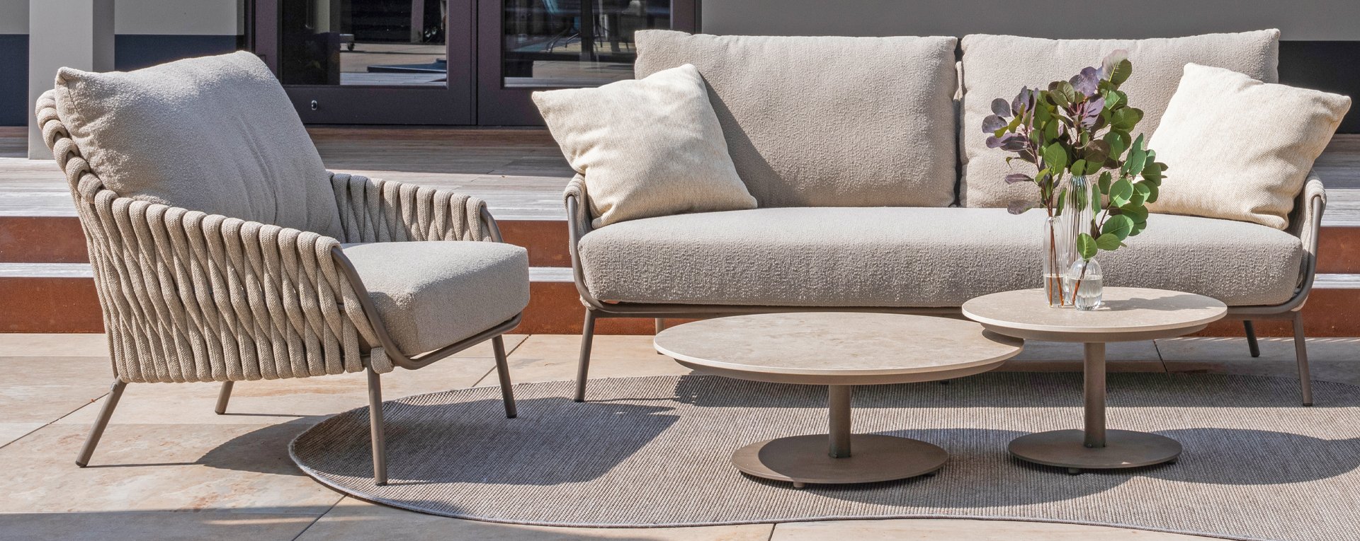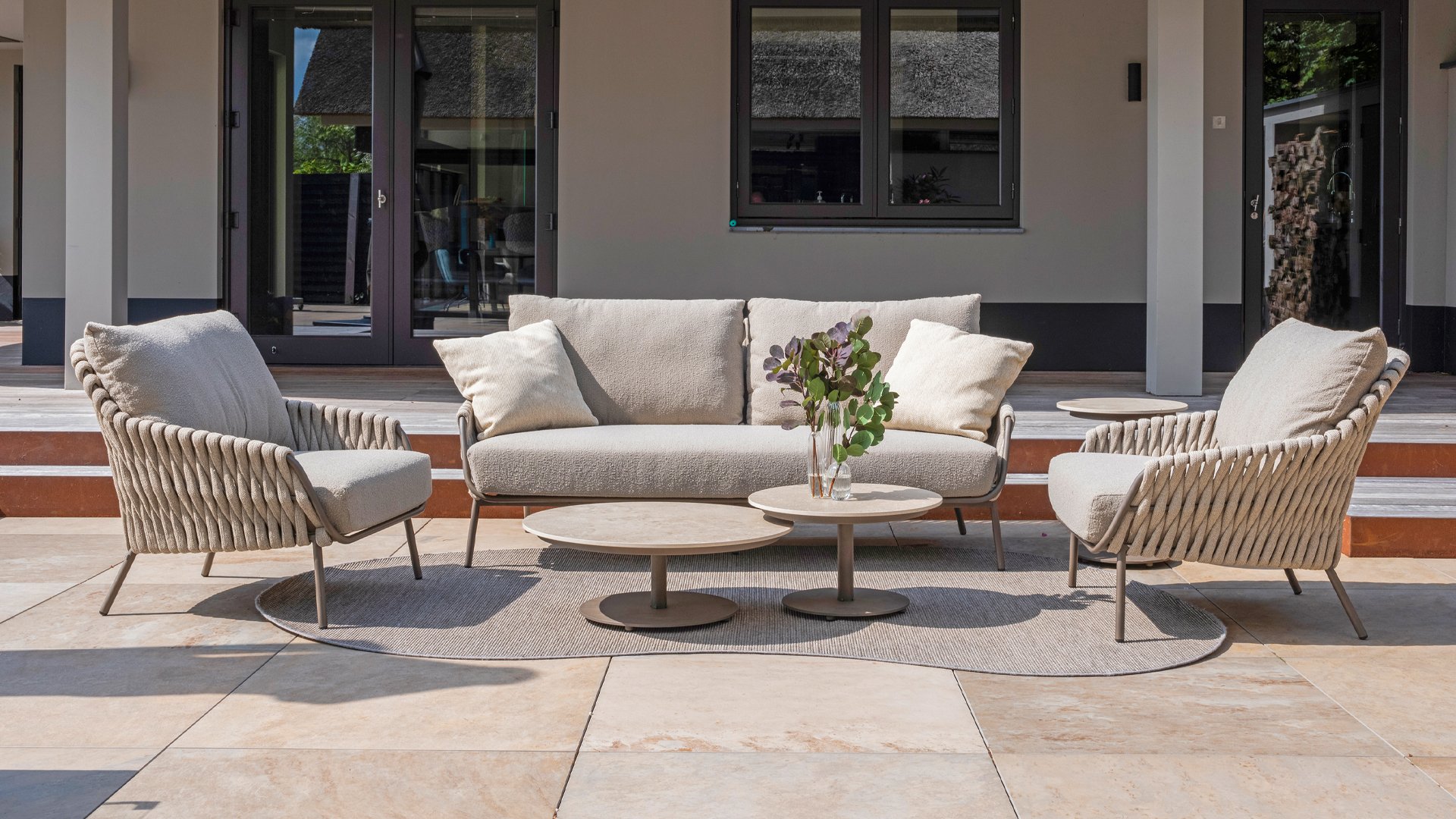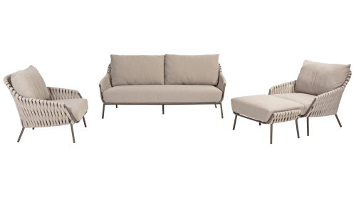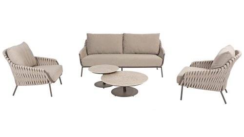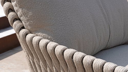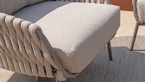 Lernen Sie das 4 Seasons Outdoor Montera loungeset kennen. Hergestellt mit einem Edelstahlrahmen in der neuen Farbe Terre. Der Seilfaden sowie die Kissen sind in der Farbe Clay gehalten, die Polsterung der Kissen ist zur Abwechslung einmal Boucle! So sieht es nicht nur schick aus, sondern auch schön, trendig und verspielt.