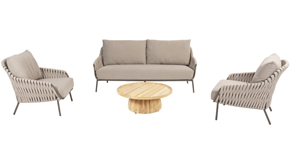 Lernen Sie das 4 Seasons Outdoor Montera loungeset kennen. Hergestellt mit einem Edelstahlrahmen in der neuen Farbe Terre. Der Seilfaden sowie die Kissen sind in der Farbe Clay gehalten, die Polsterung der Kissen ist zur Abwechslung einmal Boucle! So sieht es nicht nur schick aus, sondern auch schön, trendig und verspielt.