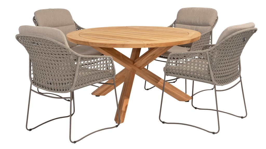 Diesen Tisch können Sie getrost als das Highlight der Kollektion bezeichnen. Das hochwertige Teakholz in Kombination mit dem schönen Kreuzbein machen diesen Taste by 4Seasons Prado 130cm Tisch zu einem Schmuckstück. Mit fast jedem Esszimmerstuhl aus unserer Kollektion ist für jeden etwas dabei. Kann mit Prado Lazy Susan kombiniert werden und ist auch Verfügbar mit Anthrazit Gestell Taste 4Seasons Prado 130 Anthrazit oder Latte Taste 4Seasons Prado 130 Latte.