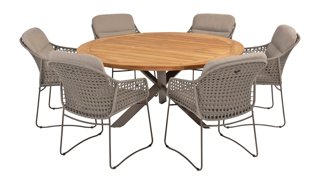 Gartenmöbel aus Teakholz bieten einen atemberaubenden Blick.Teakholz eignet sich besonders gut für den Einsatz im Außenbereich. Es ist resistent gegen Schädlinge und Pilze und widerstandsfähig gegen Sonne, Regen und Schnee. Mit der Zeit entwickelt das Teakholz eine silbergraue Patina. Gartenmöbel aus Teakholz bieten einen atemberaubenden Blick. Darüber hinaus ist es starkes Material und erfordert nur wenig Wartung. Wer die ursprüngliche Farbe des Teakholzes bevorzugt, kann durch regelmäßiges benutzen unser Pflegemittel ganz einfach das Vergrauen des Holzes verhindern.Darüber hinaus können Sie Teak mit grüner Seife reinigen. Durch Temperaturunterschiede und durch den Wechsel von Feuchtigkeit und Trockenheit können kleine Haarrisse entstehen. Es ist üblich, dass Man in dies Unvollkommenheiten findet, diese Unregelmäßigkeiten sind kennzeichnend für dieses Produkt. Diese Unregelmäßigkeiten können nie einen Anlass zu Reklamation, Garantie oder Claim formen. Es betrifft eine Unterschrift von Originalität!  Wir gewähren Garantie auf alle Produktions- und Konstruktionsfehler. Die Wirkung von Teakholz ist nicht enthalten. Wenn Sie sich für Teakholz entscheiden, erwarten wir, dass Sie diese Eigenschaften zu schätzen wissen. Eventuell auftretende Haarrisse, Äste im Teakholz und raue Oberflächen im Laufe der Zeit fallen nicht unter unsere Garantie. Diese Eigenschaften verleihen dem Teakholz seinen eigenen Charakter und sind Teil der Optik. Seien Sie vorsichtig mit einem Blumentopf oder einer Vase auf Ihrem Gartentisch aus Teakholz, da dies zu hartnäckigen Kreisen oder Farbunterschieden führen kann.