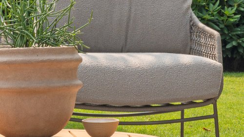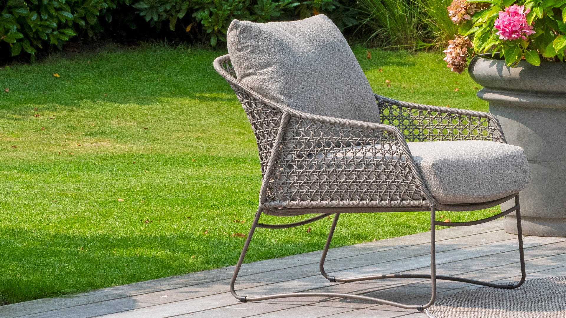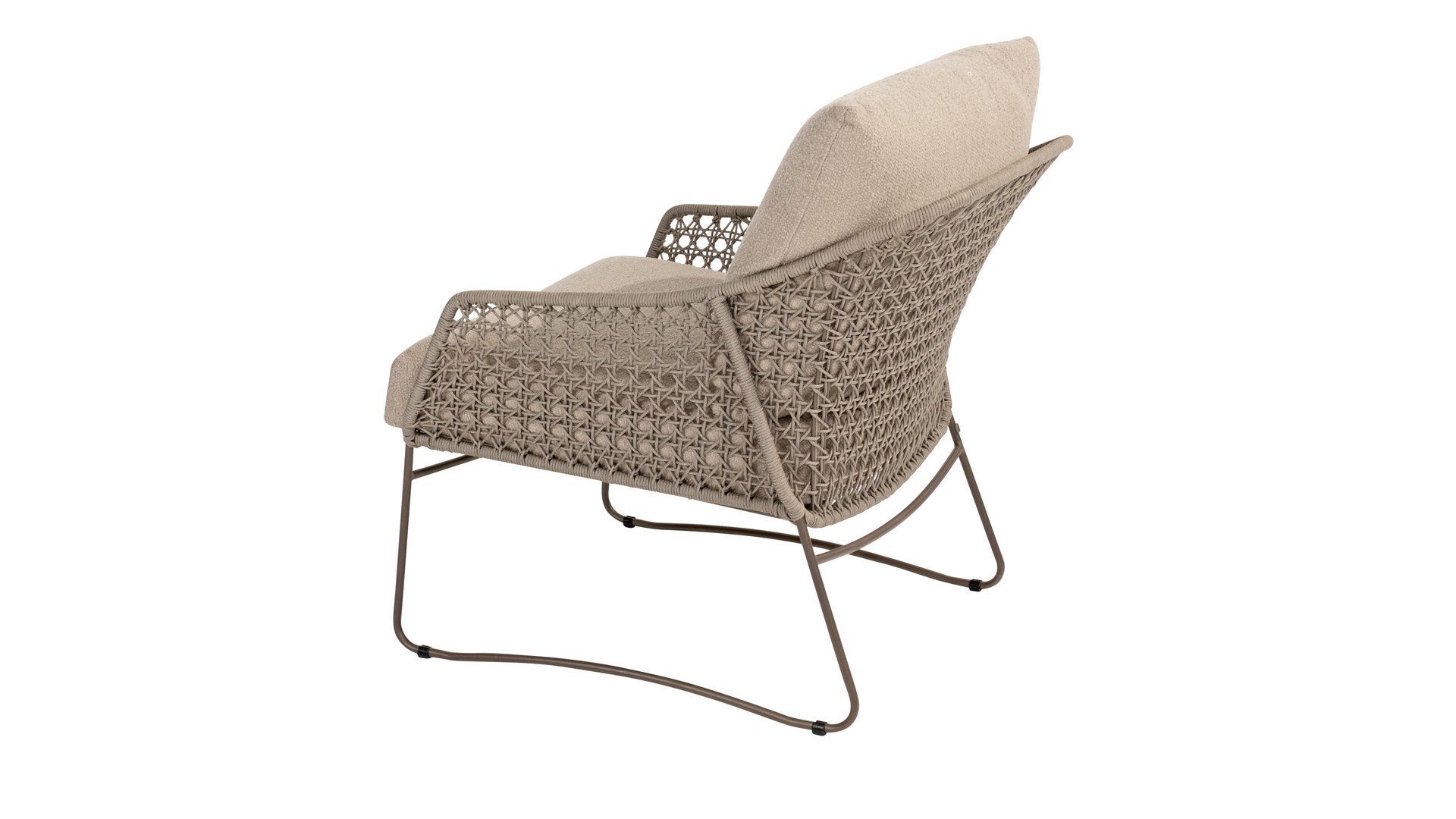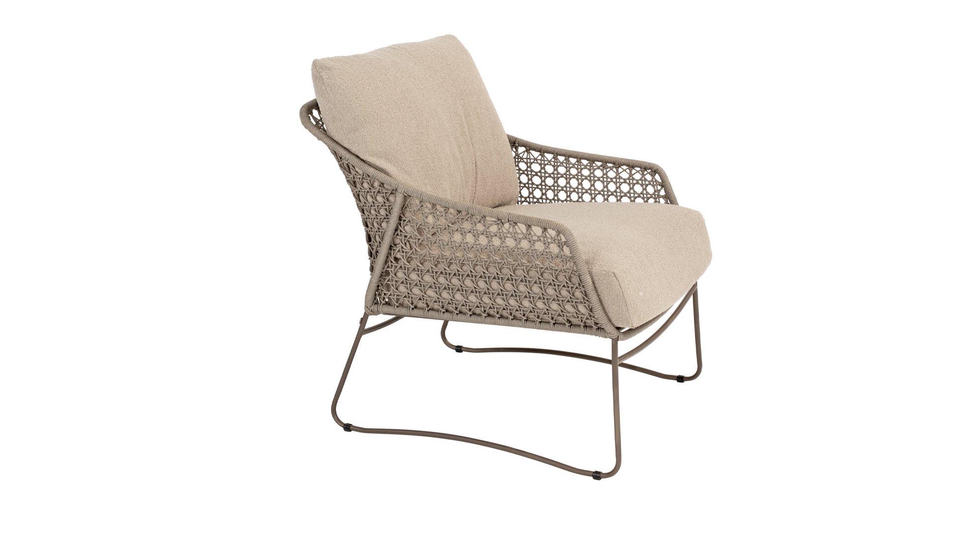 4 Seasons Moretti Lounge: Lassen Sie sich vom raffinierten Design der Moretti-Lounge überraschen. Die eleganten Rundungen des Rahmens und das kunstvolle Seilgeflecht sorgen für einen zeitlosen Look, der perfekt in jeden Garten passt. Genießen Sie höchsten Komfort mit den dicken Kissen aus weichem Bouclé-Stoff, die zum Entspannen bis in die späten Morgenstunden einladen.