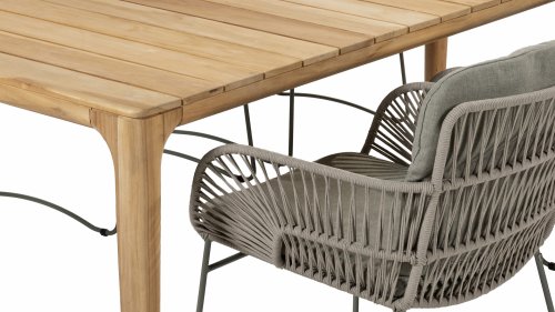 Gartenmöbel aus Teakholz bieten einen atemberaubenden Blick.Teakholz eignet sich besonders gut für den Einsatz im Außenbereich. Es ist resistent gegen Schädlinge und Pilze und widerstandsfähig gegen Sonne, Regen und Schnee. Mit der Zeit entwickelt das Teakholz eine silbergraue Patina. Gartenmöbel aus Teakholz bieten einen atemberaubenden Blick. Darüber hinaus ist es starkes Material und erfordert nur wenig Wartung. Wer die ursprüngliche Farbe des Teakholzes bevorzugt, kann durch regelmäßiges benutzen unser Pflegemittel ganz einfach das Vergrauen des Holzes verhindern.Darüber hinaus können Sie Teak mit grüner Seife reinigen. Durch Temperaturunterschiede und durch den Wechsel von Feuchtigkeit und Trockenheit können kleine Haarrisse entstehen. Es ist üblich, dass Man in dies Unvollkommenheiten findet, diese Unregelmäßigkeiten sind kennzeichnend für dieses Produkt. Diese Unregelmäßigkeiten können nie einen Anlass zu Reklamation, Garantie oder Claim formen. Es betrifft eine Unterschrift von Originalität! Wir gewähren Garantie auf alle Produktions- und Konstruktionsfehler. Die Wirkung von Teakholz ist nicht enthalten. Wenn Sie sich für Teakholz entscheiden, erwarten wir, dass Sie diese Eigenschaften zu schätzen wissen. Eventuell auftretende Haarrisse, Äste im Teakholz und raue Oberflächen im Laufe der Zeit fallen nicht unter unsere Garantie. Diese Eigenschaften verleihen dem Teakholz seinen eigenen Charakter und sind Teil der Optik. Seien Sie vorsichtig mit einem Blumentopf oder einer Vase auf Ihrem Gartentisch aus Teakholz, da dies zu hartnäckigen Kreisen oder Farbunterschieden führen kann.