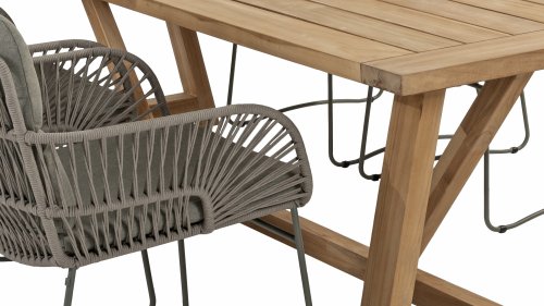 Gartenmöbel aus Teakholz bieten einen atemberaubenden Blick.Teakholz eignet sich besonders gut für den Einsatz im Außenbereich. Es ist resistent gegen Schädlinge und Pilze und widerstandsfähig gegen Sonne, Regen und Schnee. Mit der Zeit entwickelt das Teakholz eine silbergraue Patina. Gartenmöbel aus Teakholz bieten einen atemberaubenden Blick. Darüber hinaus ist es starkes Material und erfordert nur wenig Wartung. Wer die ursprüngliche Farbe des Teakholzes bevorzugt, kann durch regelmäßiges benutzen unser Pflegemittel ganz einfach das Vergrauen des Holzes verhindern.Darüber hinaus können Sie Teak mit grüner Seife reinigen. Durch Temperaturunterschiede und durch den Wechsel von Feuchtigkeit und Trockenheit können kleine Haarrisse entstehen. Es ist üblich, dass Man in dies Unvollkommenheiten findet, diese Unregelmäßigkeiten sind kennzeichnend für dieses Produkt. Diese Unregelmäßigkeiten können nie einen Anlass zu Reklamation, Garantie oder Claim formen. Es betrifft eine Unterschrift von Originalität! Wir gewähren Garantie auf alle Produktions- und Konstruktionsfehler. Die Wirkung von Teakholz ist nicht enthalten. Wenn Sie sich für Teakholz entscheiden, erwarten wir, dass Sie diese Eigenschaften zu schätzen wissen. Eventuell auftretende Haarrisse, Äste im Teakholz und raue Oberflächen im Laufe der Zeit fallen nicht unter unsere Garantie. Diese Eigenschaften verleihen dem Teakholz seinen eigenen Charakter und sind Teil der Optik. Seien Sie vorsichtig mit einem Blumentopf oder einer Vase auf Ihrem Gartentisch aus Teakholz, da dies zu hartnäckigen Kreisen oder Farbunterschieden führen kann.