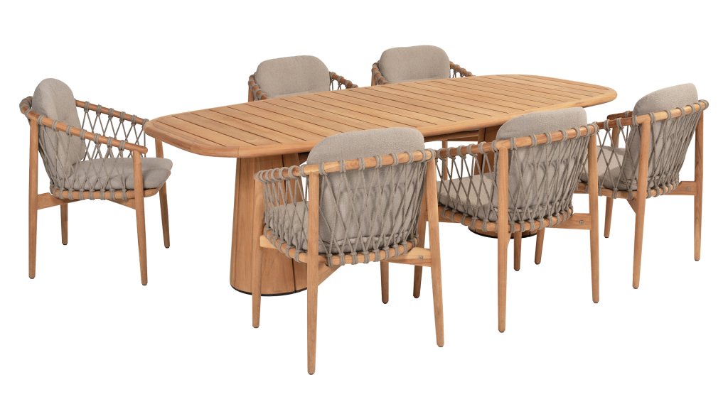 Gartenmöbel aus Teakholz bieten einen atemberaubenden Blick.Teakholz eignet sich besonders gut für den Einsatz im Außenbereich. Es ist resistent gegen Schädlinge und Pilze und widerstandsfähig gegen Sonne, Regen und Schnee. Mit der Zeit entwickelt das Teakholz eine silbergraue Patina. Gartenmöbel aus Teakholz bieten einen atemberaubenden Blick. Darüber hinaus ist es starkes Material und erfordert nur wenig Wartung. Wer die ursprüngliche Farbe des Teakholzes bevorzugt, kann durch regelmäßiges benutzen unser Pflegemittel ganz einfach das Vergrauen des Holzes verhindern.Darüber hinaus können Sie Teak mit grüner Seife reinigen. Durch Temperaturunterschiede und durch den Wechsel von Feuchtigkeit und Trockenheit können kleine Haarrisse entstehen. Es ist üblich, dass Man in dies Unvollkommenheiten findet, diese Unregelmäßigkeiten sind kennzeichnend für dieses Produkt. Diese Unregelmäßigkeiten können nie einen Anlass zu Reklamation, Garantie oder Claim formen. Es betrifft eine Unterschrift von Originalität!  Wir gewähren Garantie auf alle Produktions- und Konstruktionsfehler. Die Wirkung von Teakholz ist nicht enthalten. Wenn Sie sich für Teakholz entscheiden, erwarten wir, dass Sie diese Eigenschaften zu schätzen wissen. Eventuell auftretende Haarrisse, Äste im Teakholz und raue Oberflächen im Laufe der Zeit fallen nicht unter unsere Garantie. Diese Eigenschaften verleihen dem Teakholz seinen eigenen Charakter und sind Teil der Optik. Seien Sie vorsichtig mit einem Blumentopf oder einer Vase auf Ihrem Gartentisch aus Teakholz, da dies zu hartnäckigen Kreisen oder Farbunterschieden führen kann.