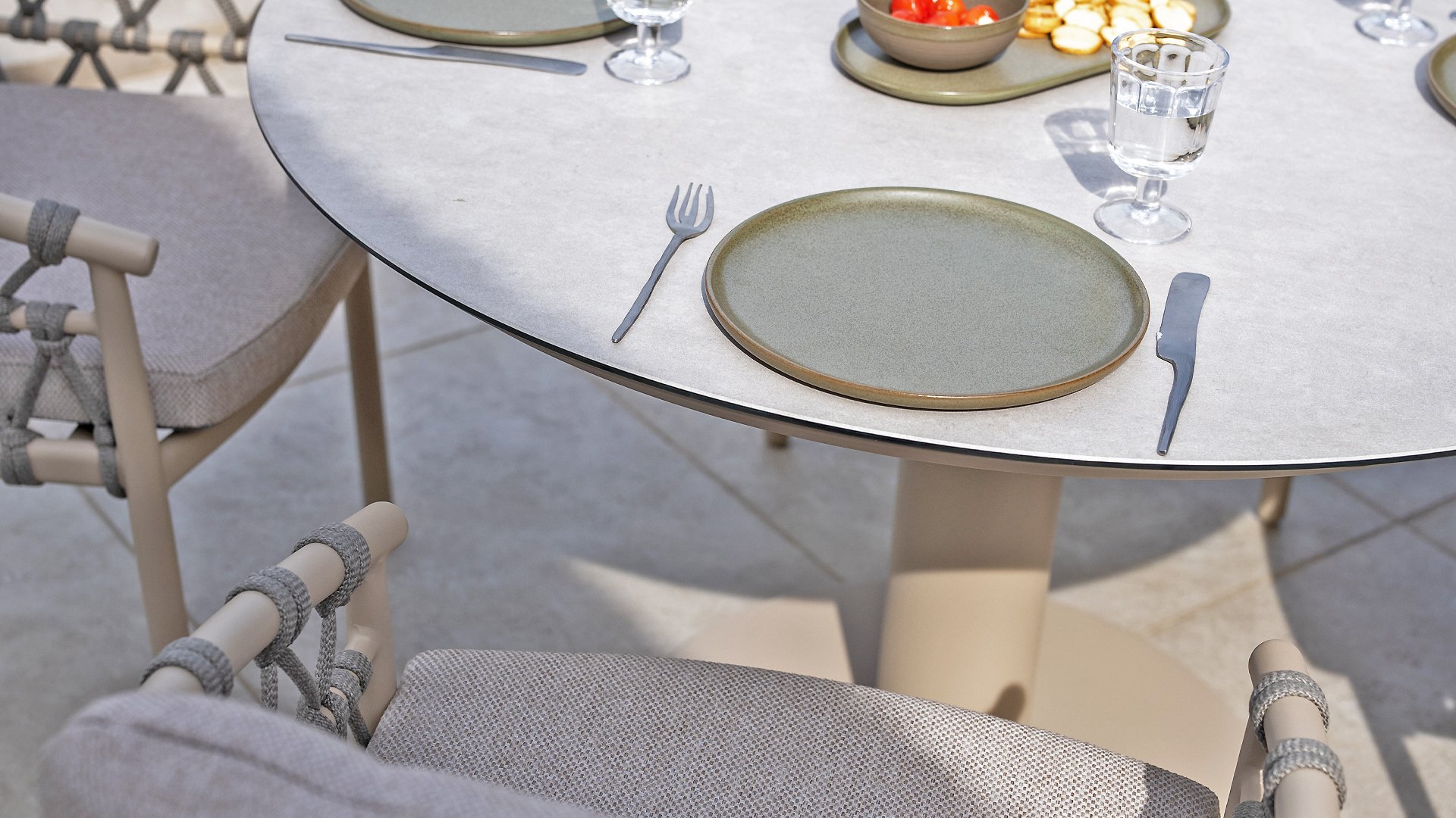 Lernen Sie Taste Sarah kennen, den runden Tisch, der Eleganz und Funktionalität mühelos vereint. Dieser schöne Tisch ist ein echter Hingucker in jedem Garten oder Essbereich. Sein rundes Design schafft eine gemütliche, einladende Atmosphäre, in der alle am Tisch in Kontakt bleiben. Die hochwertig bedruckte Keramikplatte sorgt nicht nur für eine luxuriöse Optik, sondern ist auch außergewöhnlich robust, kratzfest und pflegeleicht. Das zentrale Bein bietet maximale Beinfreiheit und verleiht dem Tisch einen modernen, luftigen Look. Taste by 4 Seasons Outdoor Sarah ist in zwei Ausführungen und zwei Farben erhältlich. Der Tisch ist in zwei Größen erhältlich: 120x75cm (Dining) und 130x69cm (Low Dining) in den Farben Latte und Terre. Entdecken Sie sie unten: