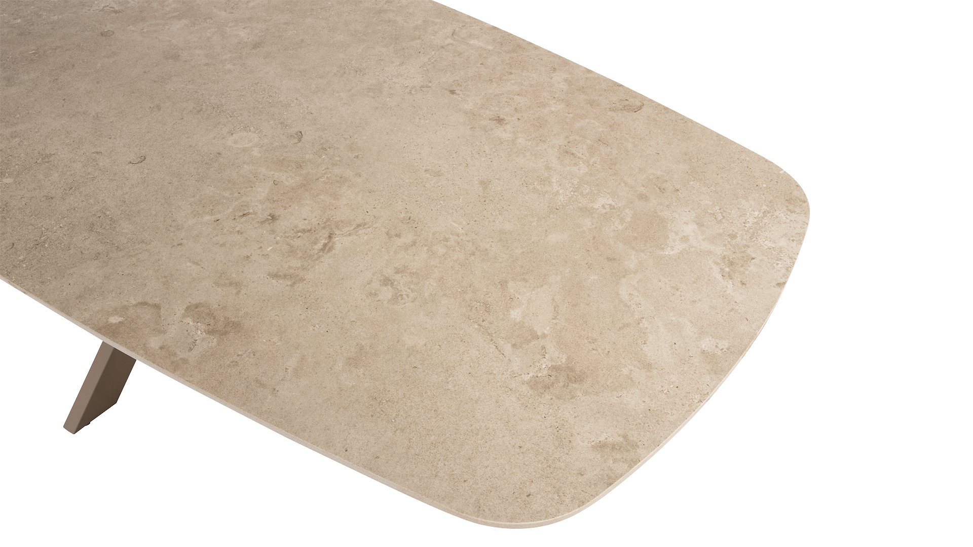 1 x 4Seasons Nevada Low Dining Barrel Tisch Ceramic/ Alu Latte 250x105xH70cm
